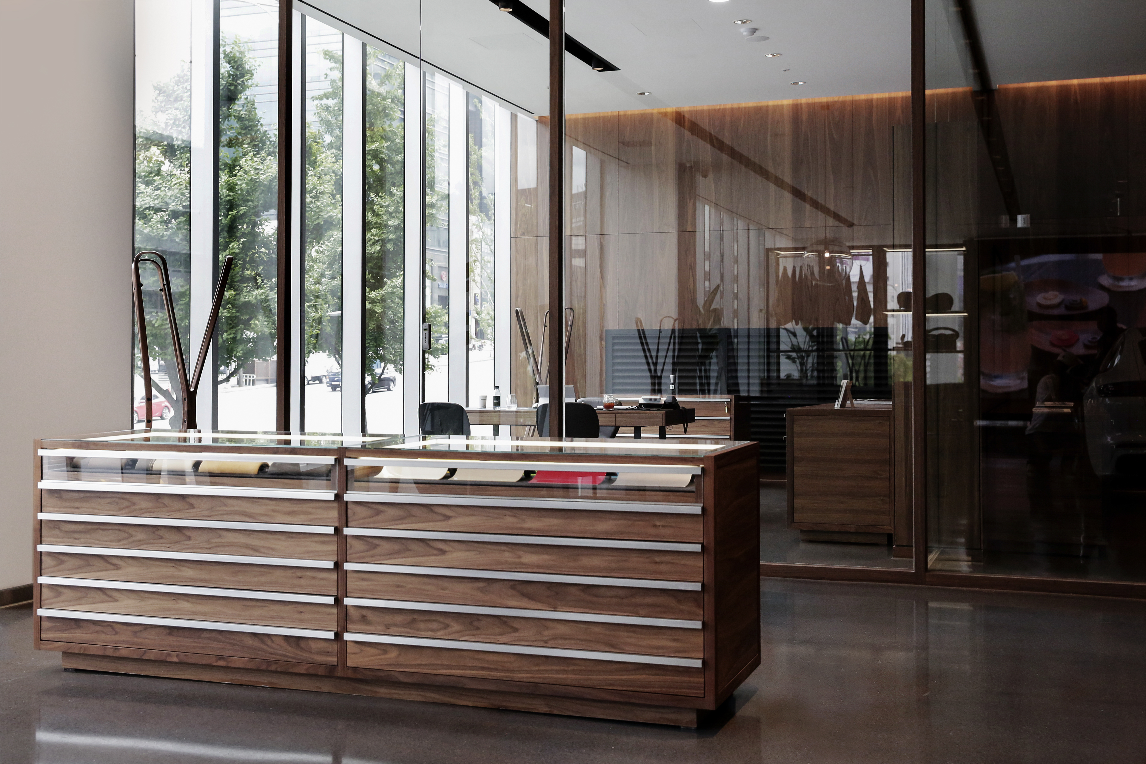 The “Porsche Studio Cheongdam” in Seoul, South Korea, officially opened its doors in June 2019. ClassiCon models, such as the Selene Pendant Lamp and the Sedan Lounge Chair, are key elements of the innovative interior concept.