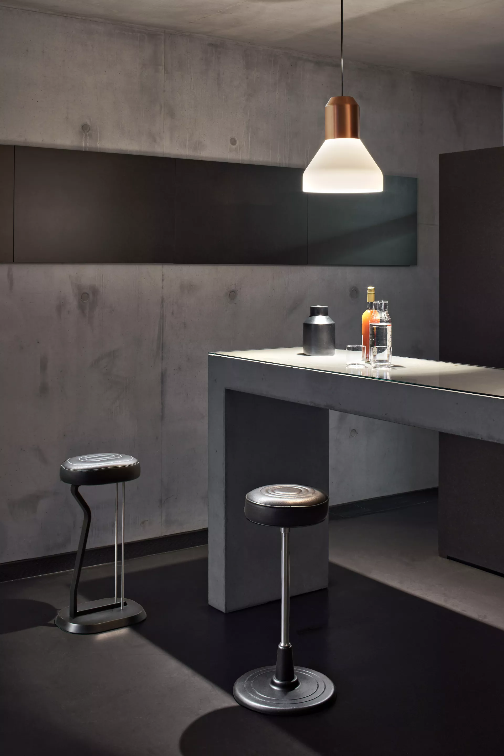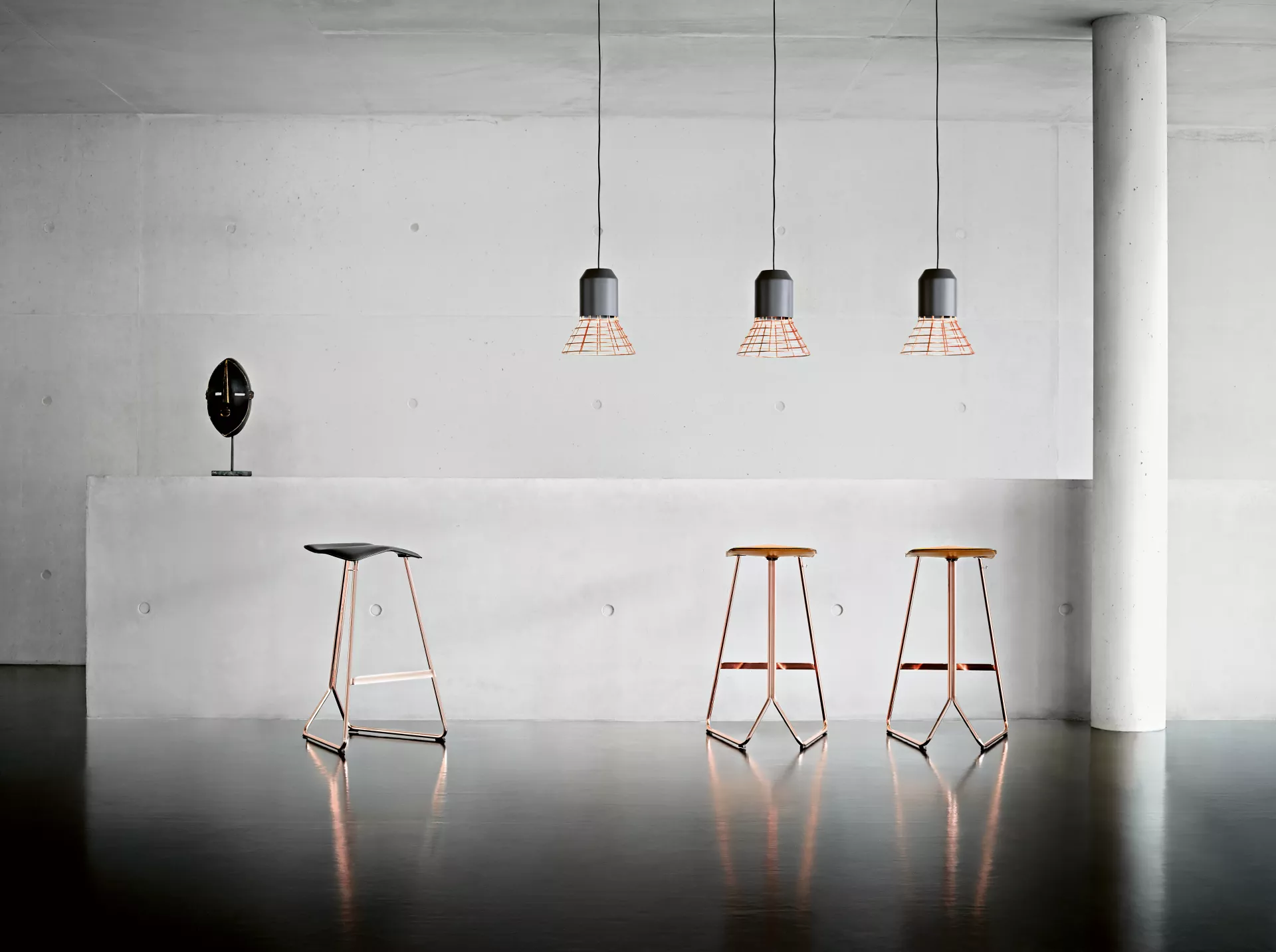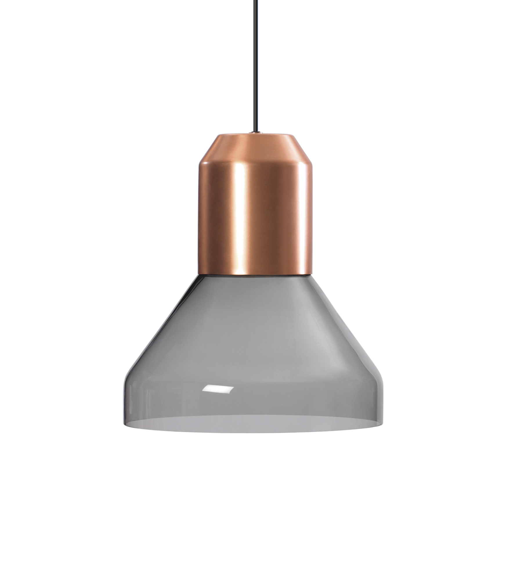 Den Bell Lights von Sebastian Herkner sieht man ihre Wandlungsfähigkeit und Flexibilität auf den ersten Blick an. Jeder Schirm der Hängeleuchten-Familie kann beliebig mit den schlichten, zylindrischen Fassungen in Grau, Messing oder Kupfer kombiniert und einfach zusammengeschraubt werden. Mit verschiedenen Materialien, Strukturen und Farben schaffen sie ganz unterschiedliche Lichtstimmungen. Werden mehrere Leuchten in einer Gruppe aufgehängt, treten die kontrastierenden Schirme in einen spannungsreichen Dialog und offenbaren dennoch klar ihre Zusammengehörigkeit. Die Bell Lights erinnern so formal aber auch funktional an Studioleuchten und transferieren diese Idee der wandelbaren Leuchte aus dem Fotobereich mit textilen Materialien, Glas, Buntmetallen und warmen Farben in den Wohnraum.