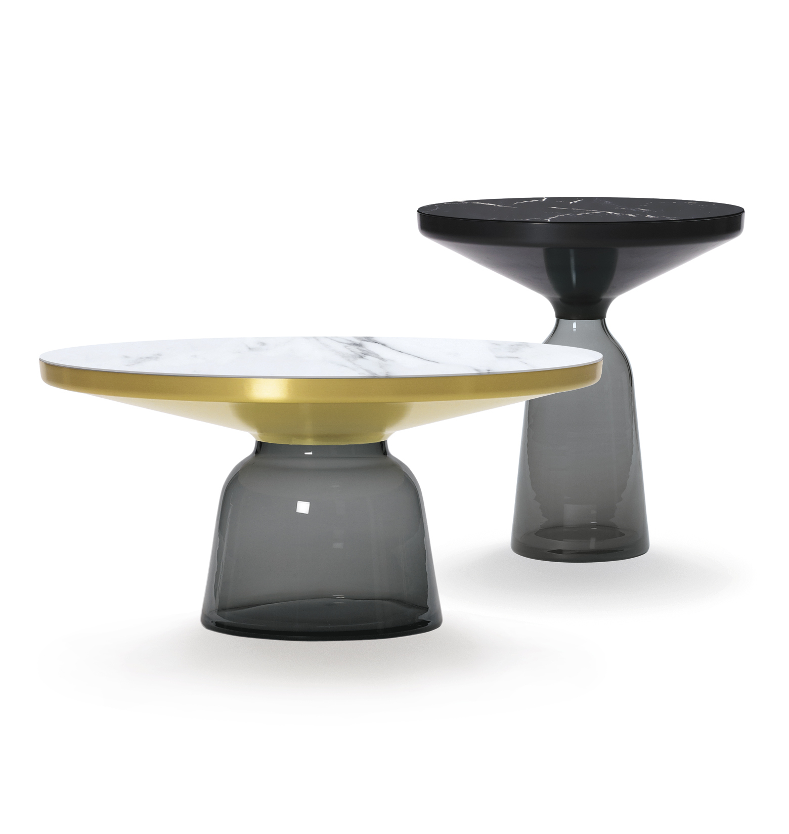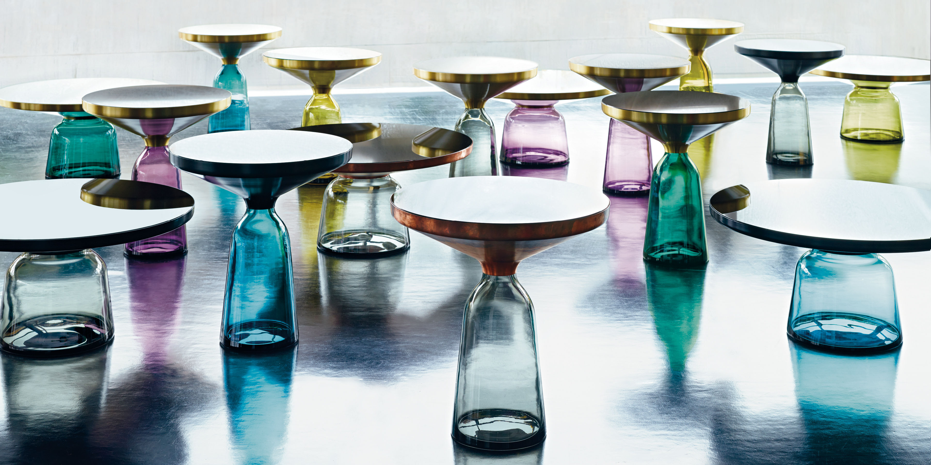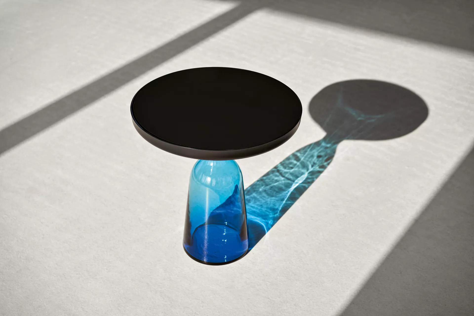 Mit ihren reizvollen Reflexionen und Materialkontrasten werden die Beistelltische zu charakterstarken Elementen im Wohnbereich. Sie zelebrieren die Schönheit der Materialien, ihrer Farben, Oberflächen und der handwerklich-traditionellen Verarbeitung. Der Bell Table von Sebastian Herkner ist ein Meisterwerk traditioneller Handwerkskunst. Jeder Tisch ist handgefertigt, mit den typischen Merkmalen wie unterschiedliche Glasstärken, kleinere Bläschen oder Unebenheiten.