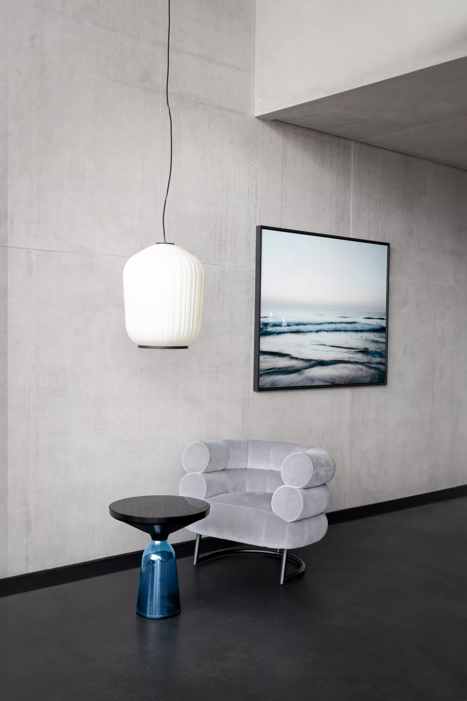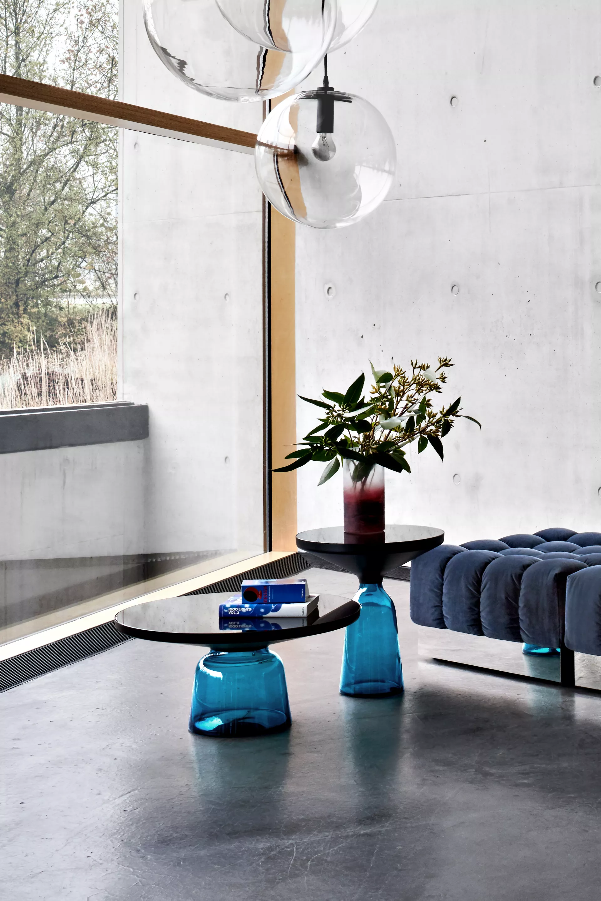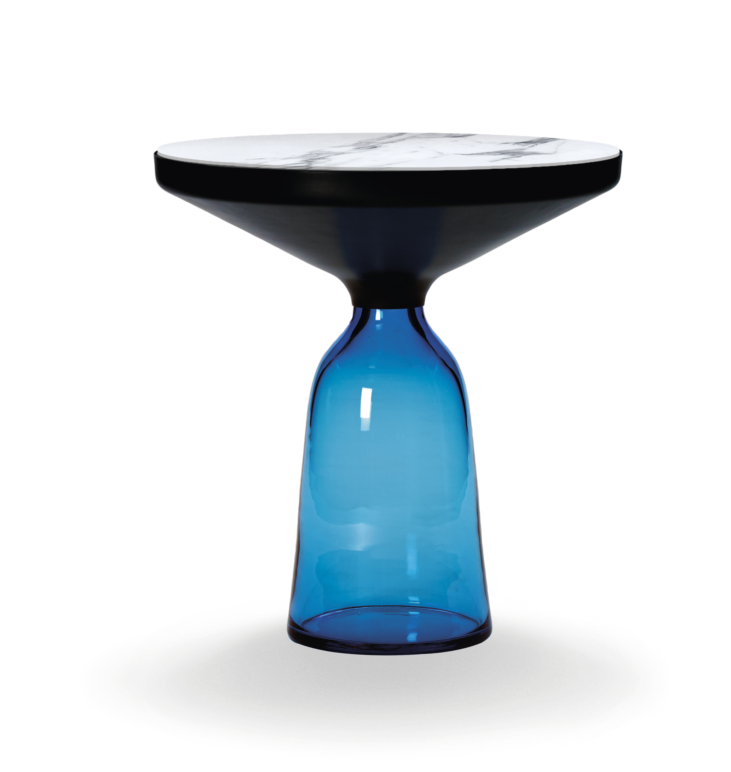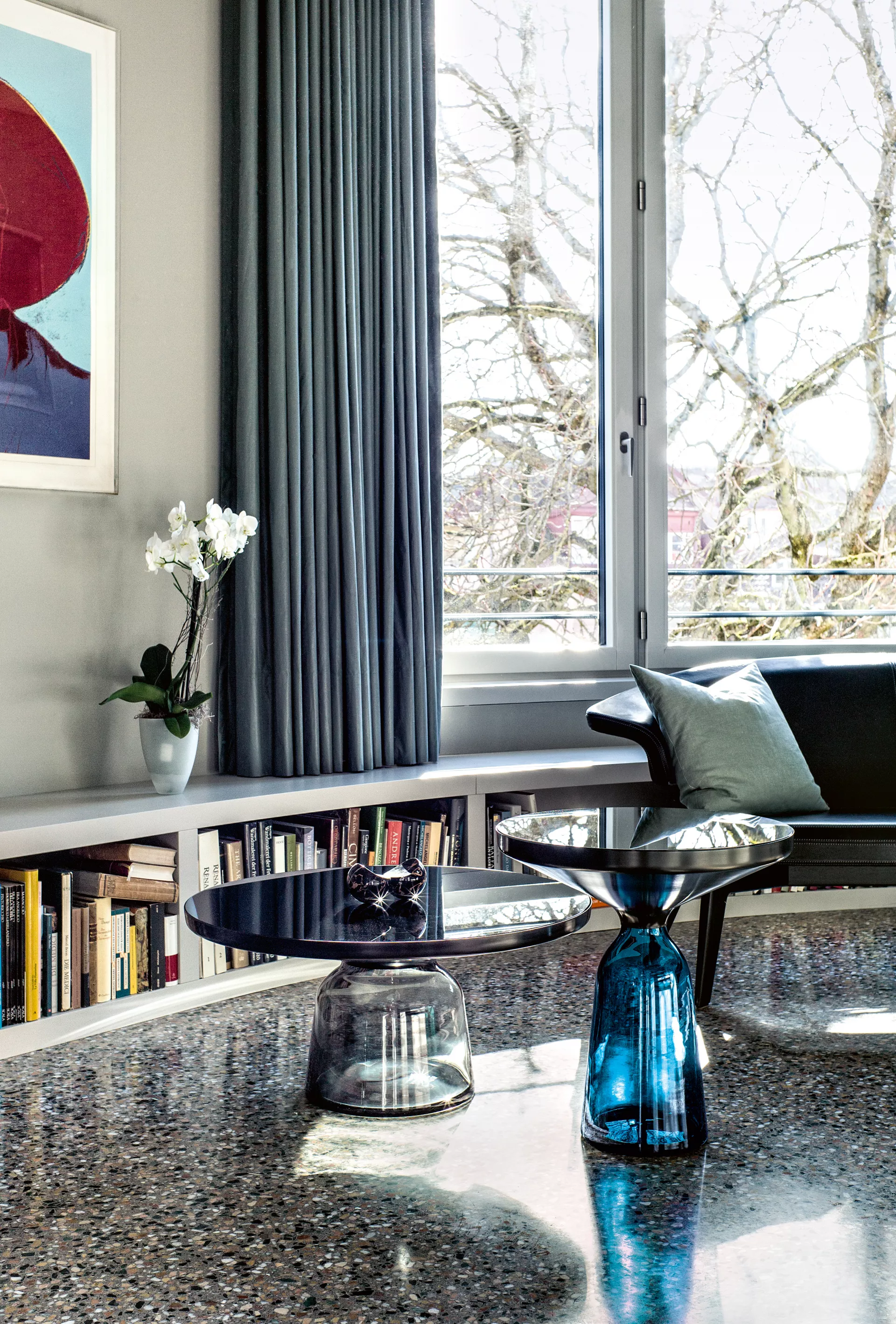 Mit ihren reizvollen Reflexionen und Materialkontrasten werden die Beistelltische zu charakterstarken Elementen im Wohnbereich. Sie zelebrieren die Schönheit der Materialien, ihrer Farben, Oberflächen und der handwerklich-traditionellen Verarbeitung. Der Bell Table von Sebastian Herkner ist ein Meisterwerk traditioneller Handwerkskunst. Jeder Tisch ist handgefertigt, mit den typischen Merkmalen wie unterschiedliche Glasstärken, kleinere Bläschen oder Unebenheiten.