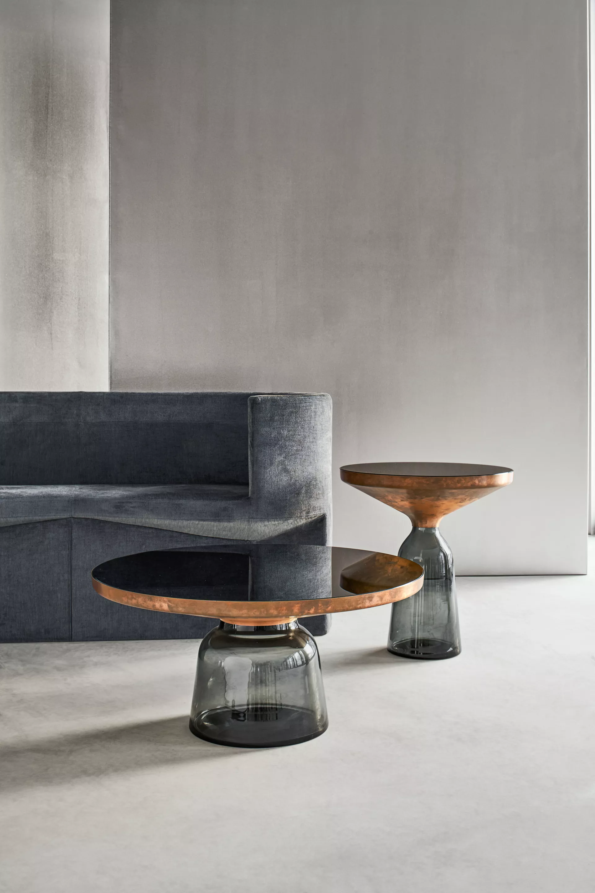 Mit ihren reizvollen Reflexionen und Materialkontrasten werden die Beistelltische zu charakterstarken Elementen im Wohnbereich. Sie zelebrieren die Schönheit der Materialien, ihrer Farben, Oberflächen und der handwerklich-traditionellen Verarbeitung. Der Bell Table von Sebastian Herkner ist ein Meisterwerk traditioneller Handwerkskunst. Jeder Tisch ist handgefertigt, deshalb sind auch kleinere Bläschen oder Unebenheiten ein typisches Merkmal.