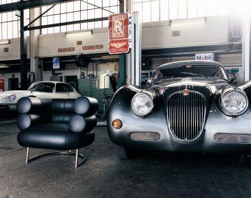 Inspiration aus der Werbung: Eileen Grays Sessel nimmt die prägnante Form des Michelin Männchens ‚Bibendum‘ auf.