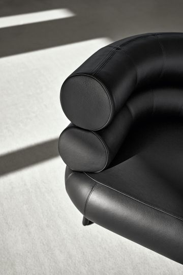 Der Bibendum ist eine singulare Erscheinung. Nirgendwo in der Designgeschichte wird man eine Sitzgelegenheit finden, die dieser gleicht. Trotz seiner Größe ist der Bibendum von bestechender Harmonie. Wie kein zweiter Sessel verbindet er majestätische Repräsentationswirkung mit Charme und Esprit. Eileen Gray unterstrich den Charakter ihres liebenswerten Salonlöwen mit augenzwinkernder Ironie, indem sie ihn nach dem Michelin-Reifenmännchen benannte, dessen Form der Sessel zitiert.