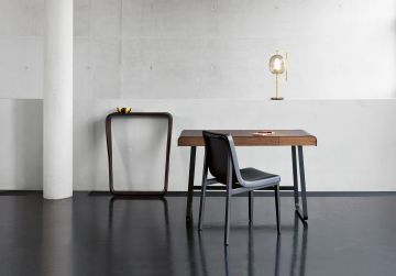 Licht dient uns im Alltag indem es alles um sich herum hervorhebt wobei es selbst oft vernachlässigt wird. Hier dient die Lichtquelle an sich als Inspiration; wie ihr uralter Vorgänger, die Feuerfackel, besteht dieser Entwurf einfach aus einem aufrechten Stab mit einer leuchtenden Spitze. Ein schlichter, zart getönter Glasschirm, der von einem Arm des Gestells herabhängend die Lichtquelle umfängt, schützt diese sanft und inszeniert sie gleichzeitig zum Mittelpunkt.