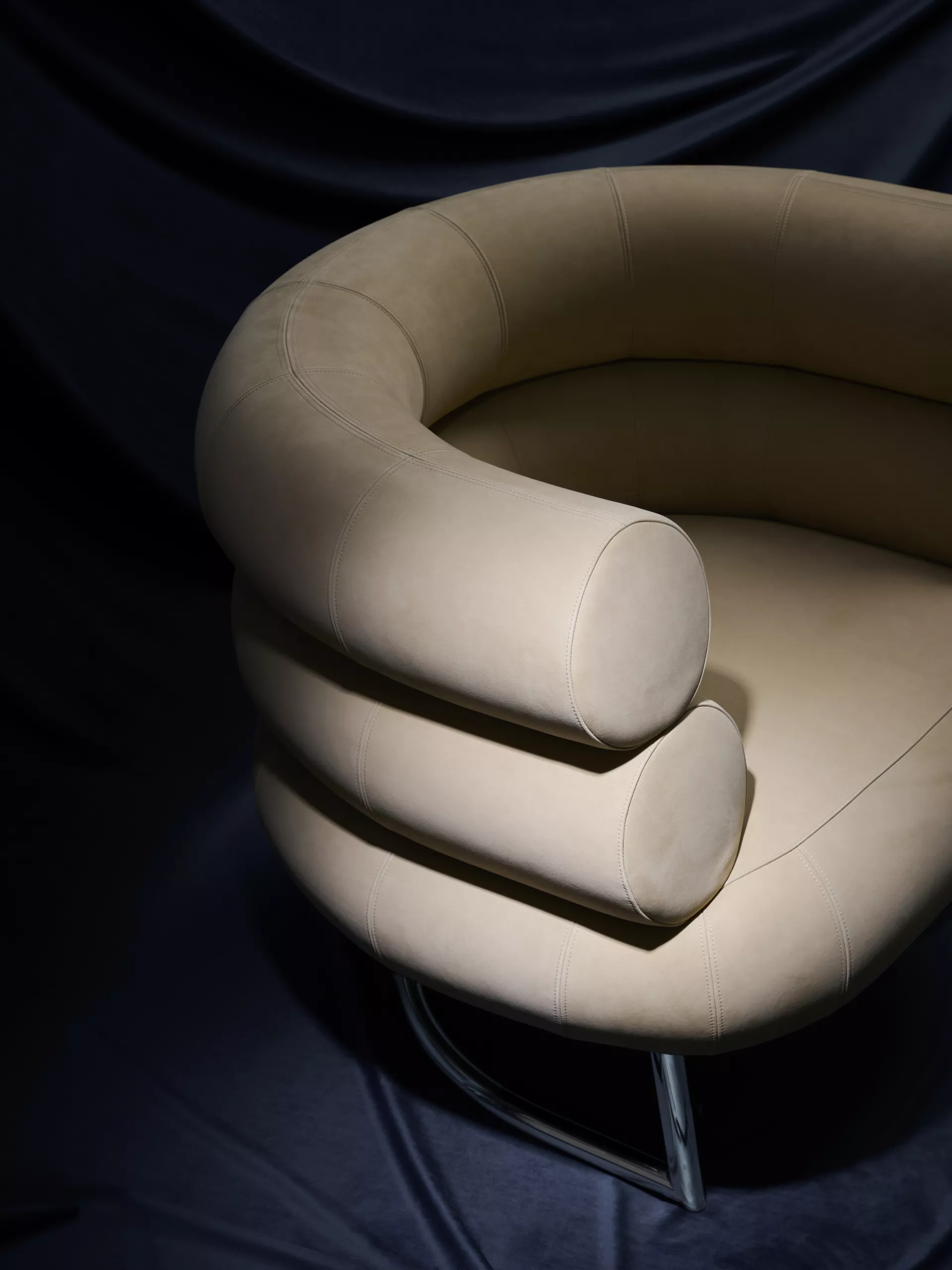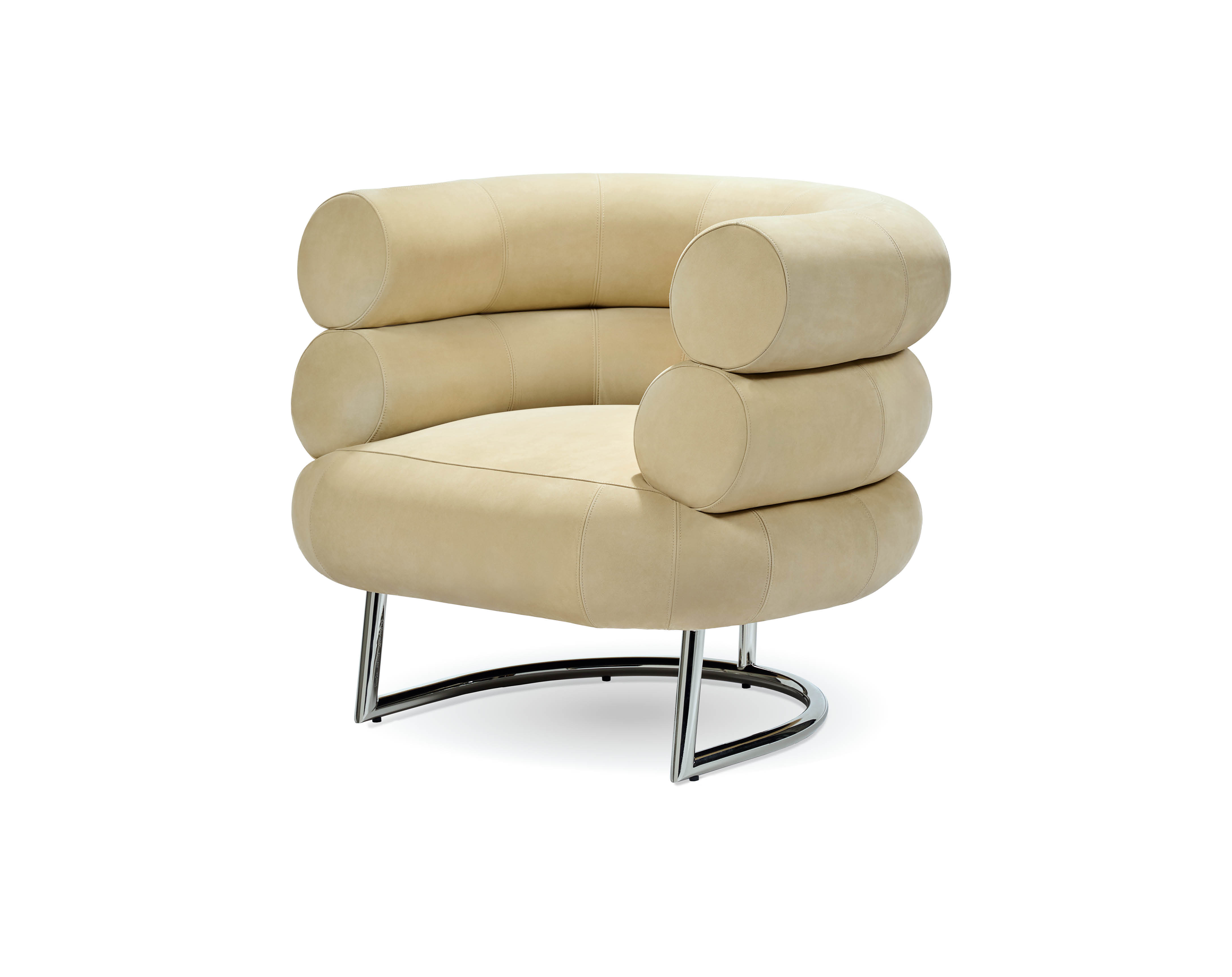 Ein Entwurf, der Skulptur, Kulturgeschichte und "eine Prise Humor" vereint. Der Bibendum Sessel von Eileen Gray aus dem Jahr 1926 zählt zu den ausdrucksstärksten Werken der Moderne. Seit 100 Jahren verkörpert seine markante Form den nonkonformistischen Geist seiner Designerin und ihren visionären Anspruch an Gestaltung. Inspiriert von einem seltenen historischen Original aus den 1920er-Jahren interpretiert die Jubiläumsedition den Bibendum Sessel mit besonderen Materialien und veredelten Details neu: das hochwertige Nubukleder in einem warmen Sandton betont den skulpturalen Charakter der üppig gepolsterten Rollen, während das vernickelte Stahlrohrgestell dem Entwurf eine zeitgemäße Eleganz verleiht. Jeder Sessel trägt die eingravierte Signatur von Eileen Gray sowie eine individuelle Editionsnummer von 1 bis 100.