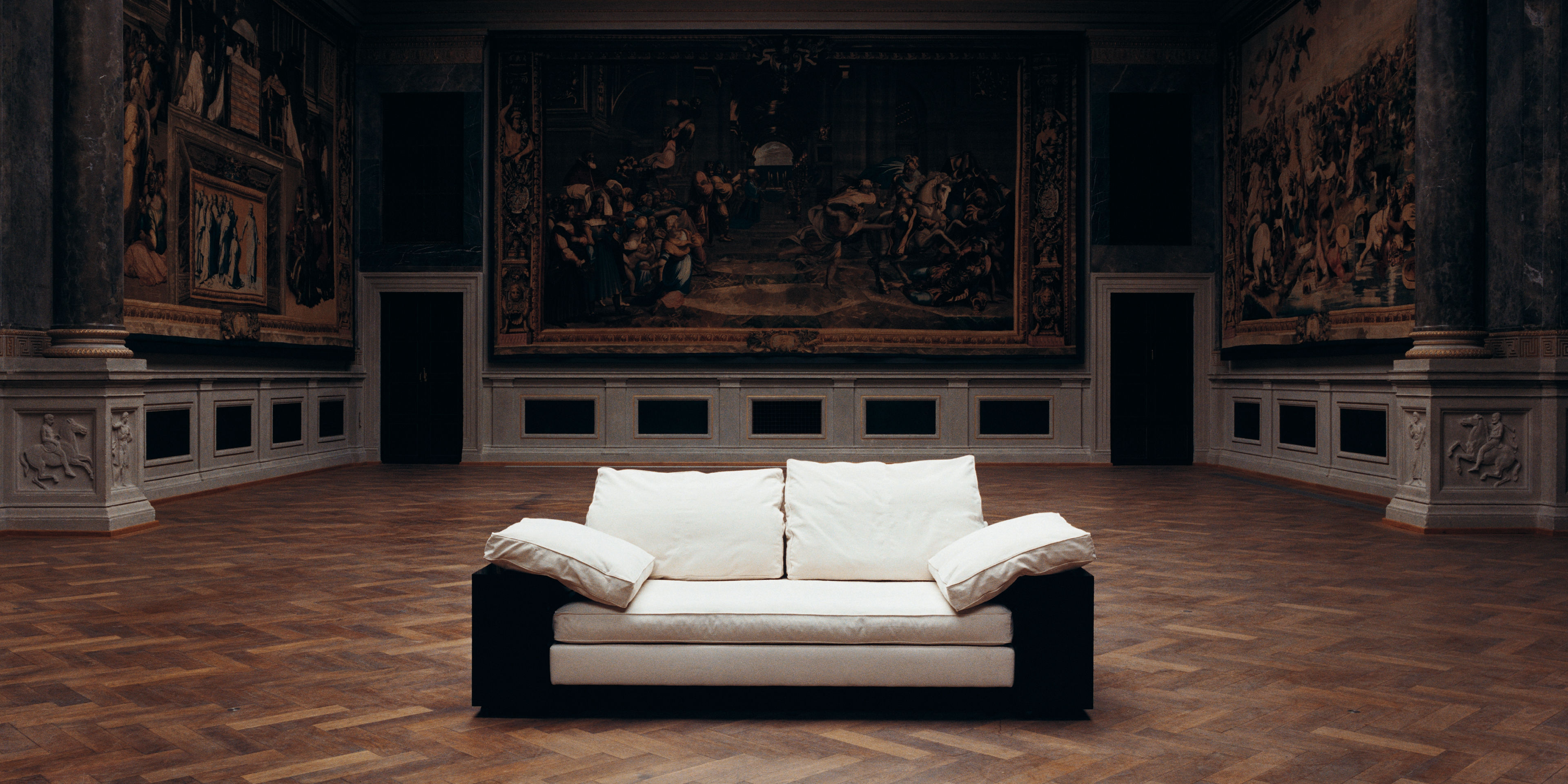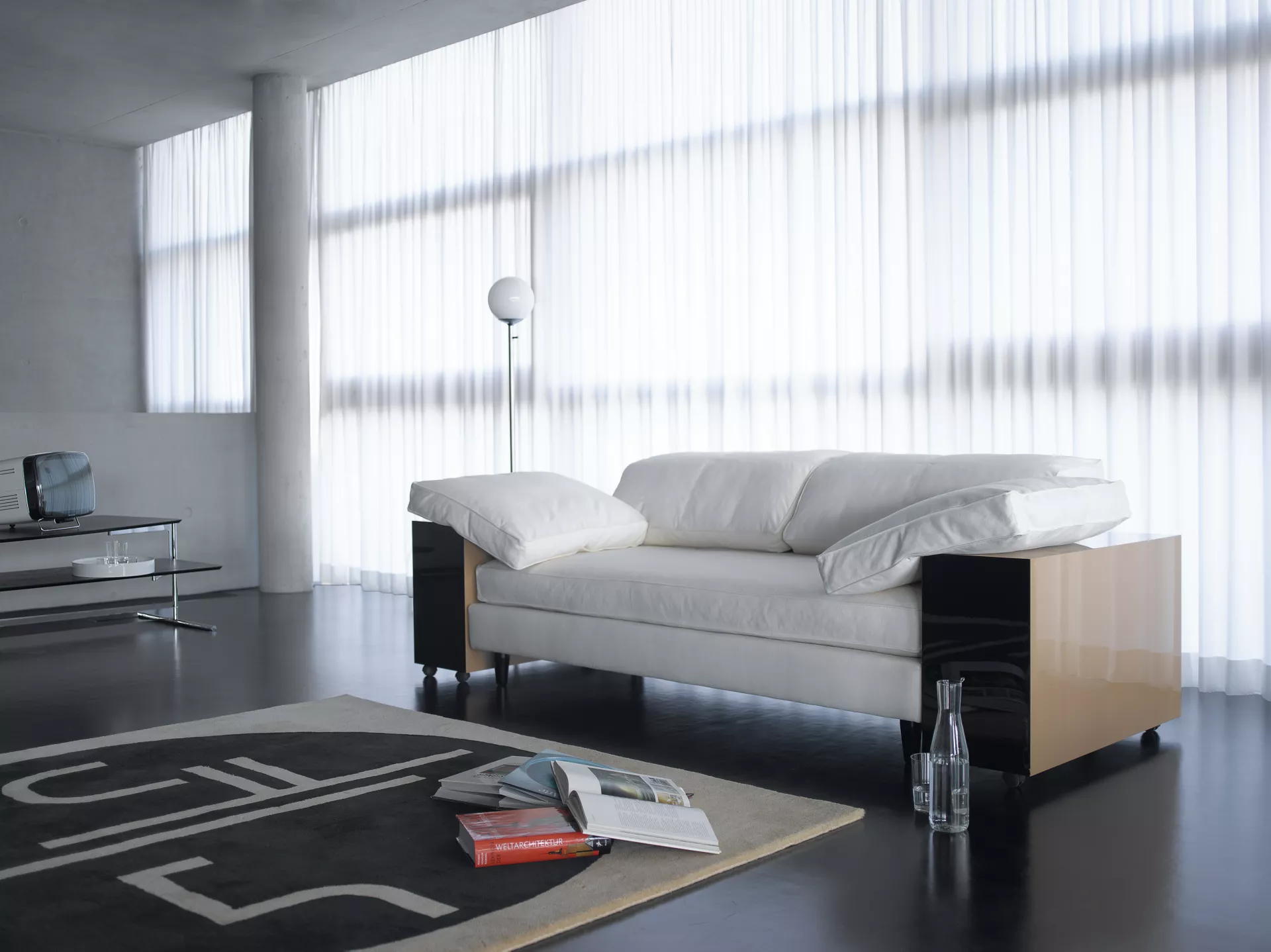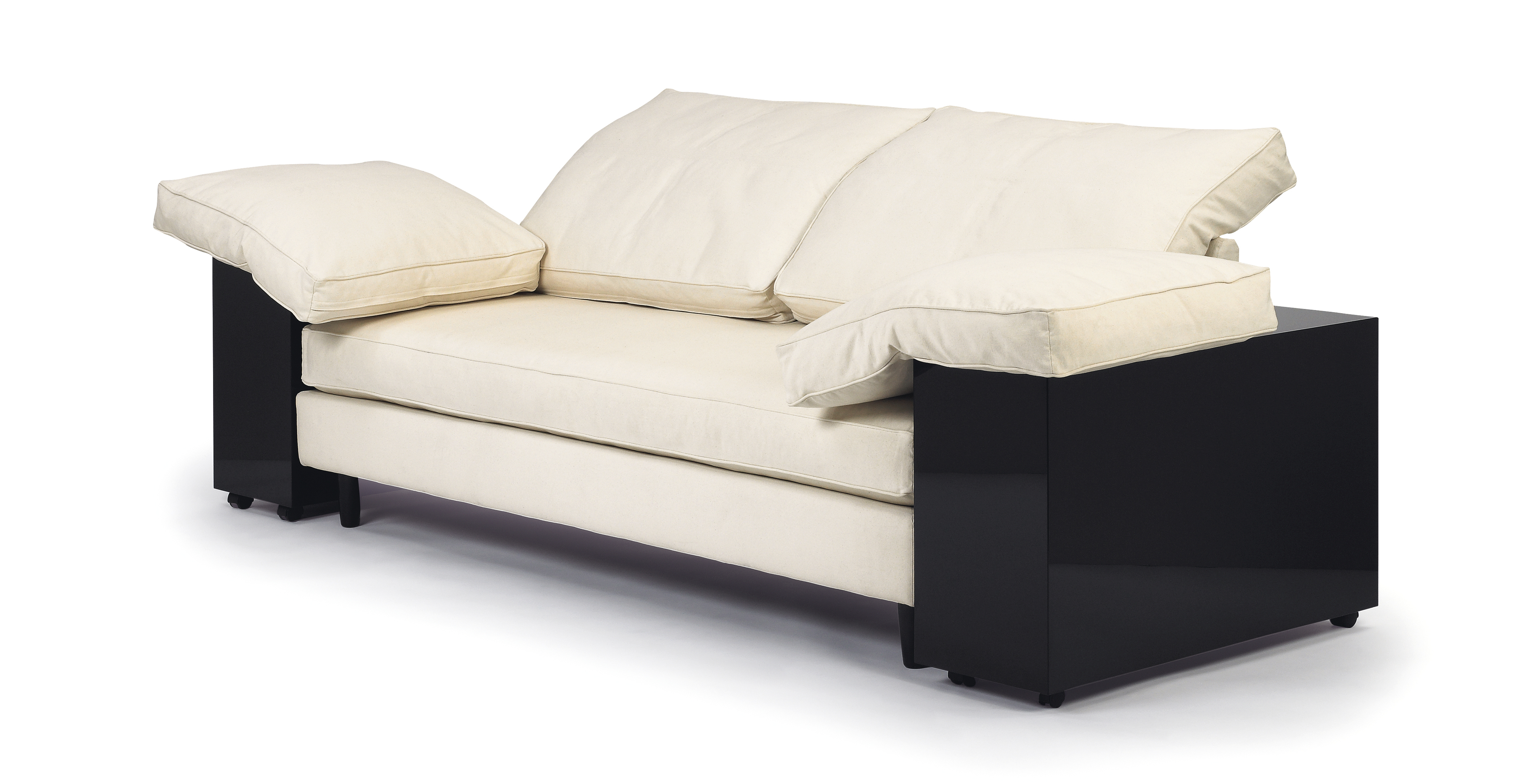 Mit lackierten Seitenteilen ist das Lota Sofa luxuriös und gleichzeitig von großer Einfachheit, ja Lässigkeit.