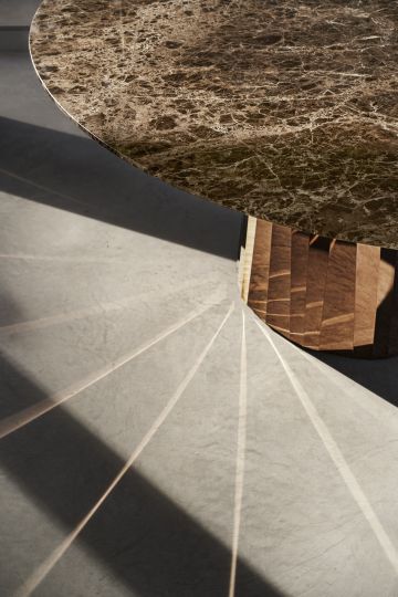 Mit der Tischserie Pli bringt die französische Designerin Victoria Wilmotte Objekte von ungewöhnlicher kristalliner Eleganz und verblüffender Geometrie in den Wohnraum, in das Esszimmer oder Foyerbereiche. Die Knicke und Faltungen, von denen Pli seinen Namen bezieht, lassen den Edelstahlfuß fast wie einen überdimensional geschliffenen Edelstein erscheinen. Die ovalen Formen von Grundfläche und Tischplatte des Tisches stehen in reizvollem Kontrast zu den Facetten des Fußes, die für ein faszinierendes Spiel mit Lichtbrechungen und Farbreflexen im Raum sorgen. Der Pli Table kann als repräsentativer Esstisch für bis zu acht Personen dienen. Im Entrée oder Foyer, in Galerien und Läden kann er aber auch als spektakulärer Blickfang eingesetzt werden.