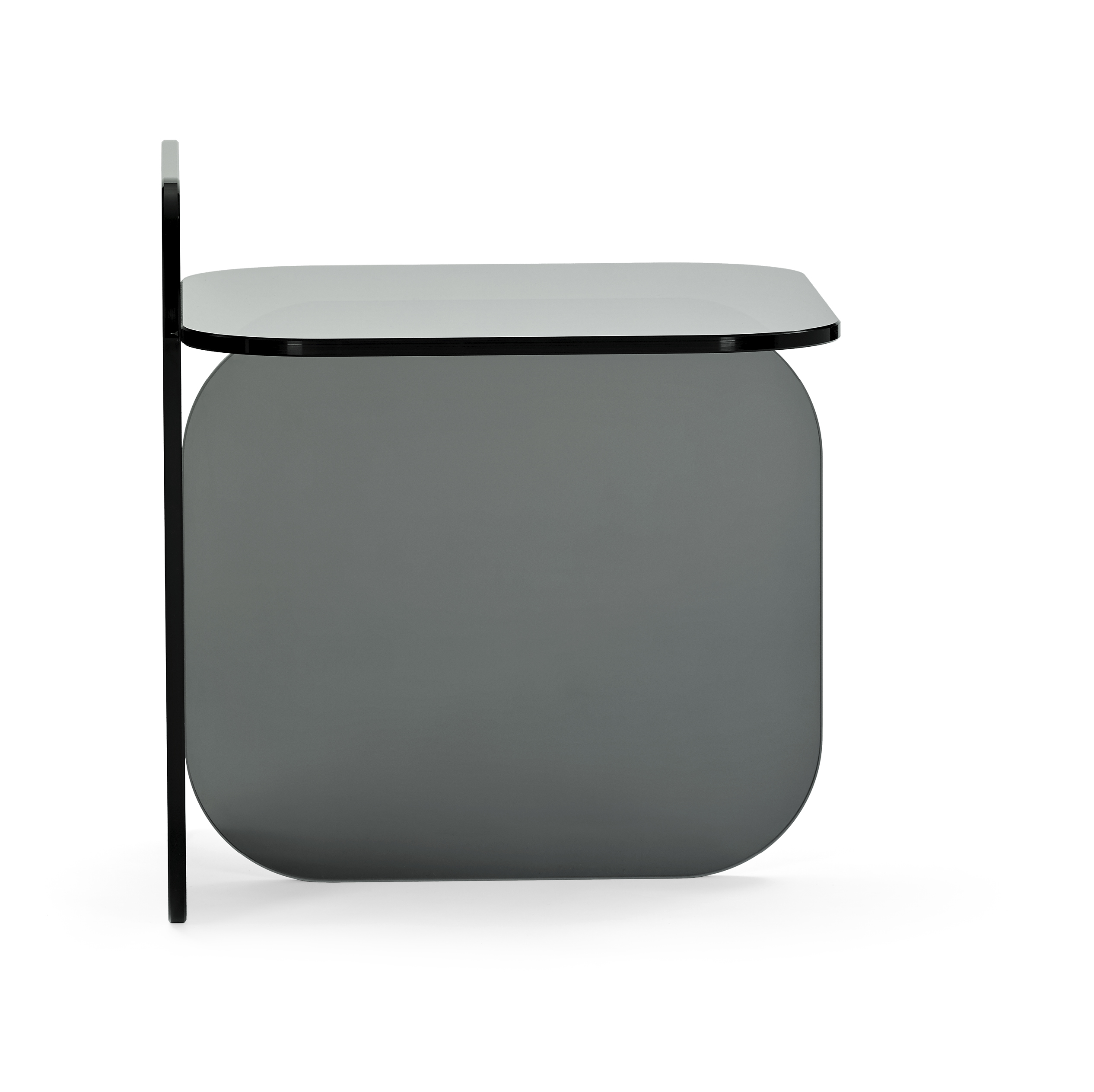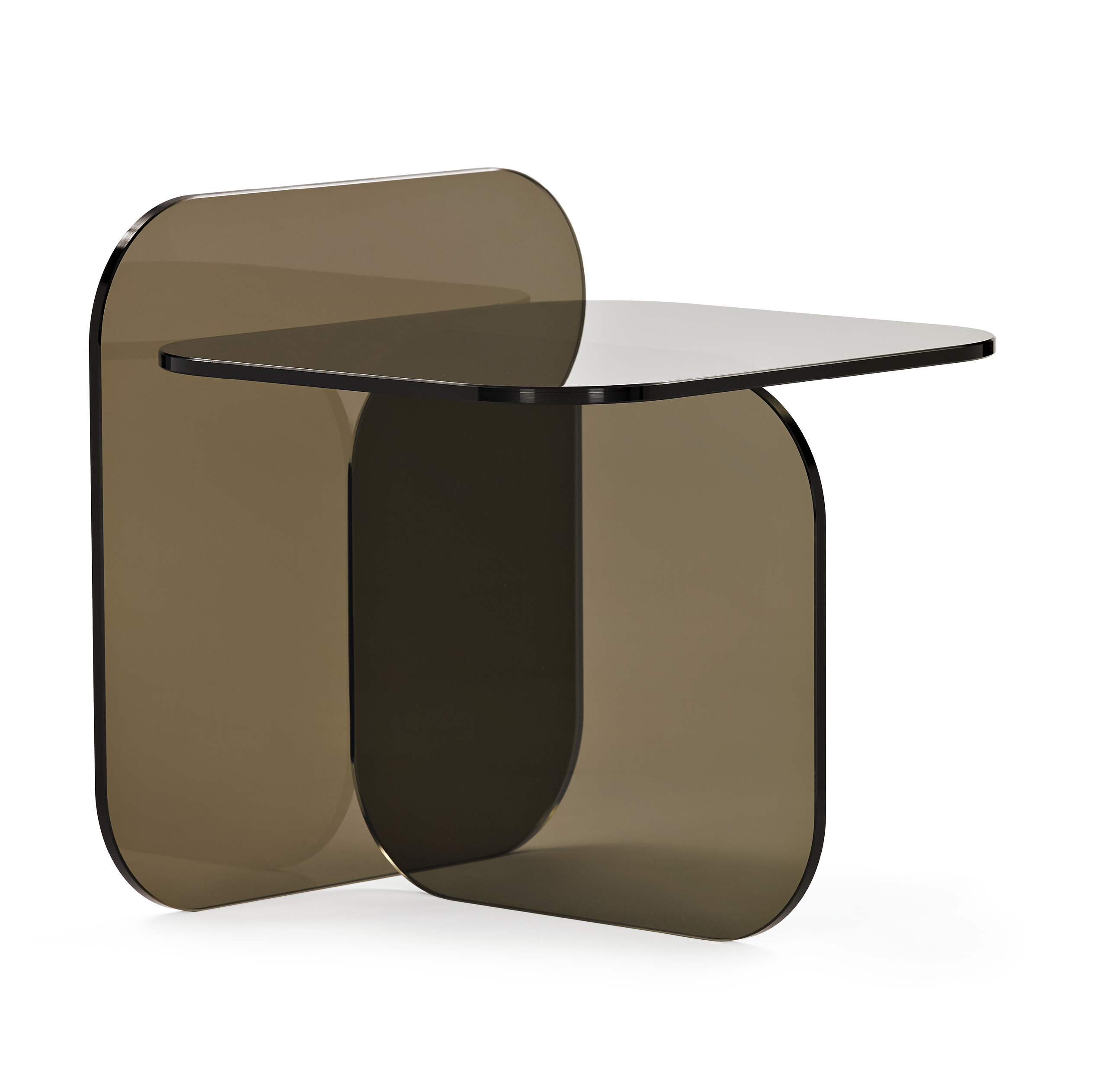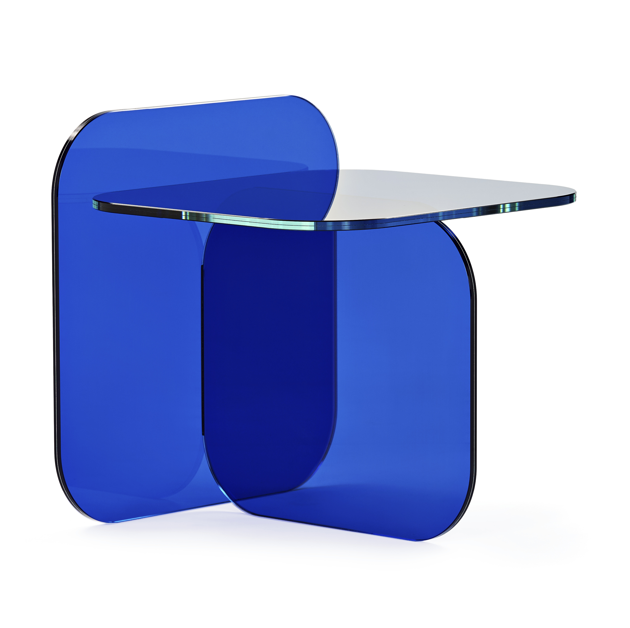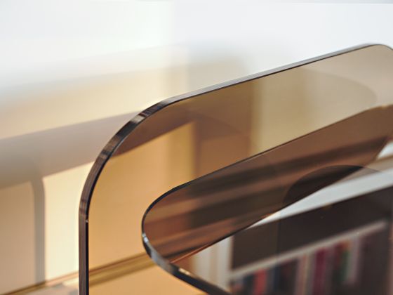 Beistelltisch. Parsolglas in Bronze oder Grau. Oder Kristallglas mit Farbeinlage in Royalblau.