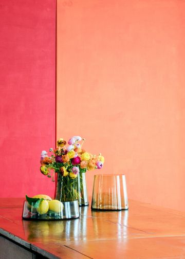 Farben wie Edelsteine – von Smaragd-grün bis Amethyst-violett – entfalten in mundgeblasener Glasqualität ihre dekorative Wirkung. Ihre schlichte Form und ein großzügiges Format kennzeichnen die Vase und die Schale der ClassiCon Kollektion. Die Farben lassen sich untereinander gut kombinieren und setzen Ihrer Freude an Gestaltung keine Grenzen. Mit Blumen oder Früchten, aber auch pur als Objekt, setzen sie interessante Akzente im Raum.