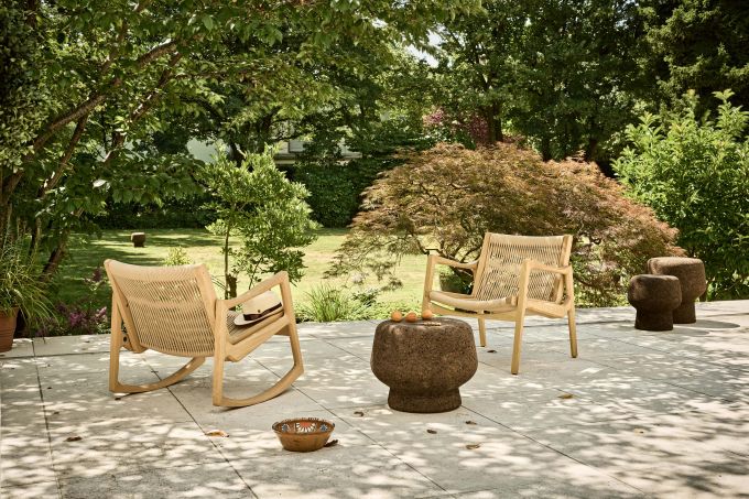 Just as Volkshaus Outdoor, the Euvira family is made suitable for outdoor use thanks to oiled robinia wood, allowing it to reveal its clear, elegant presence under the open sky. Designer Jader Almeida skilfully draws on the designs of the great Brazilian masters of the 1960s and 1970s, while shaping an independent, contemporary style for his armchair that is distinctly his own. Precise contours, finely articulated lines and subtle thickening or tapering of the wooden frame lend the pieces both stability and elegance. The cord-strung surfaces create a graphic interplay of lines, lending the design a certain transparency while offering exceptional seating comfort.