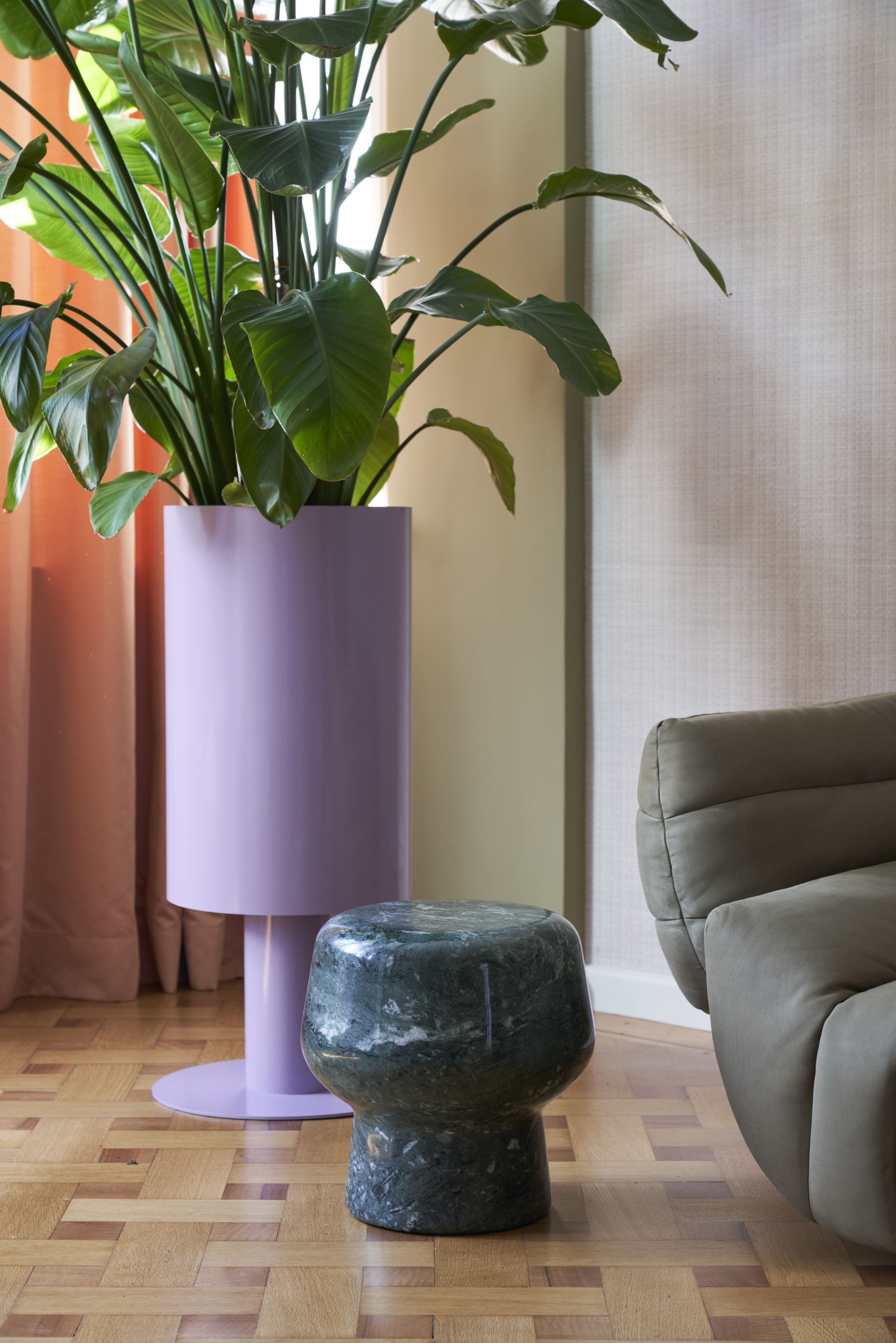 The silhouette of a champagne cork served as inspiration for Herzog & de Meuron’s design of the Corker furniture, which can be used as a stool or side table. The extension of the popular product family with a new version made of marble emphasises the monolithic character of the design even more: the object made of coloured natural stone looks like a sculpture in the room. Jacques Herzog says: “You could almost see the Corker as a Pop Art object because it emerged directly and without any significant reshaping from enlarging an object that exists in our everyday culture.” This furniture made of polished or matt marble is attractive not only as an aesthetic highlight but also a haptic one: the tactile qualities of natural stone invite you to touch the material – the cool, smooth surface forms a contrast to the warm, velvety cork of the original designs.