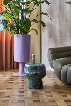 The silhouette of a champagne cork served as inspiration for Herzog [&] de Meuron’s design of the Corker furniture, which can be used as a stool or side table. The extension of the popular product family with a new version made of marble emphasises the monolithic character of the design even more: the object made of coloured natural stone looks like a sculpture in the room. Jacques Herzog says: “You could almost see the Corker as a Pop Art object because it emerged directly and without any significant reshaping from enlarging an object that exists in our everyday culture.” This furniture made of polished or matt marble is attractive not only as an aesthetic highlight but also a haptic one: the tactile qualities of natural stone invite you to touch the material – the cool, smooth surface forms a contrast to the warm, velvety cork of the original designs.