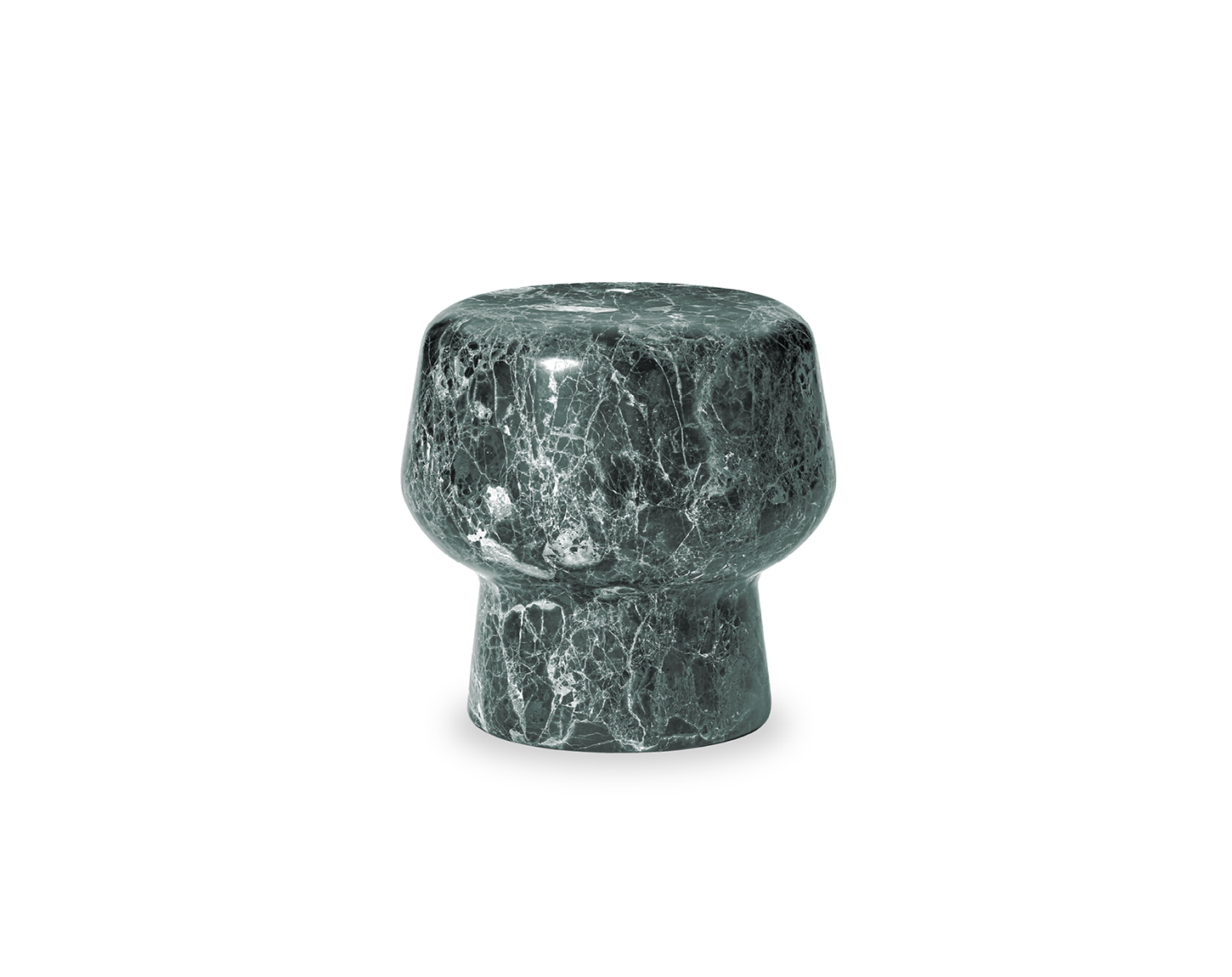 Stool or side table. Solid marble in various versions, matt or polished and impregnated. Milled from one block. Outdoor Version: Solid marble in various versions, matt and impregnated.