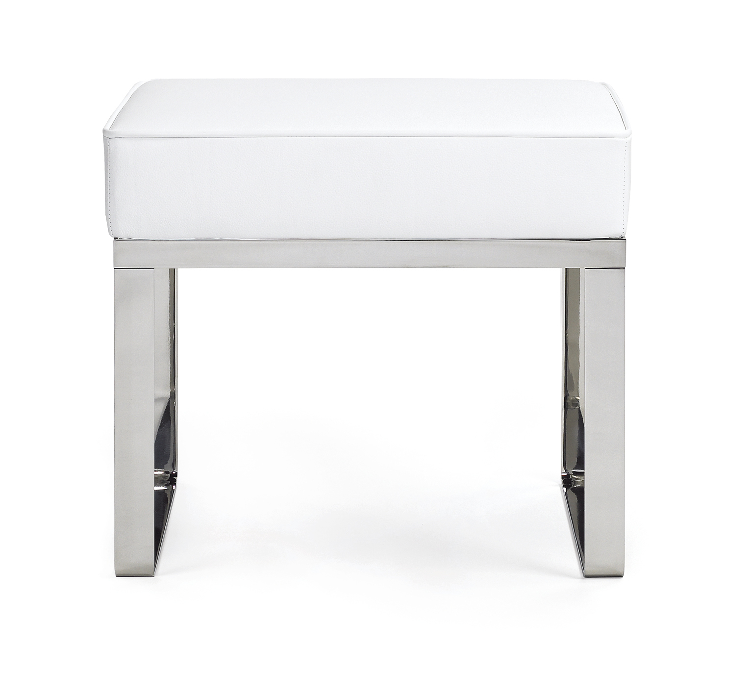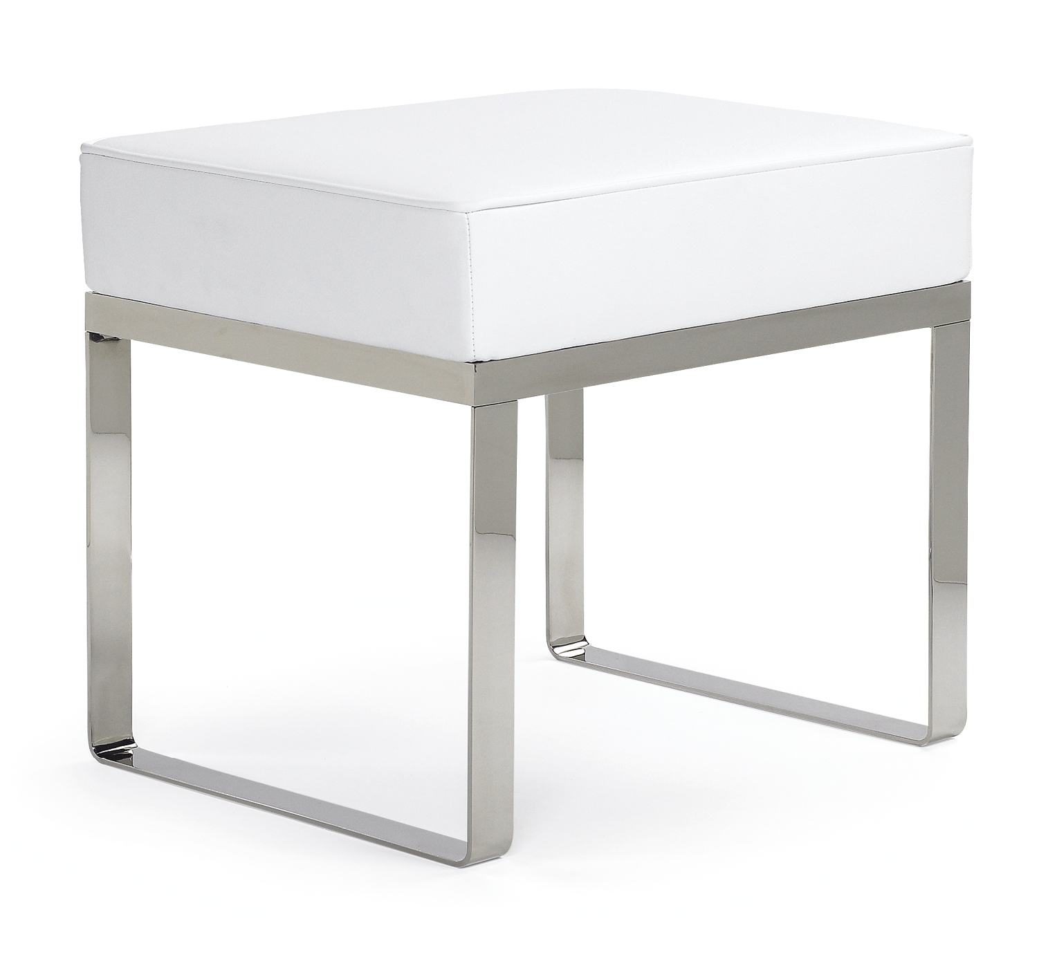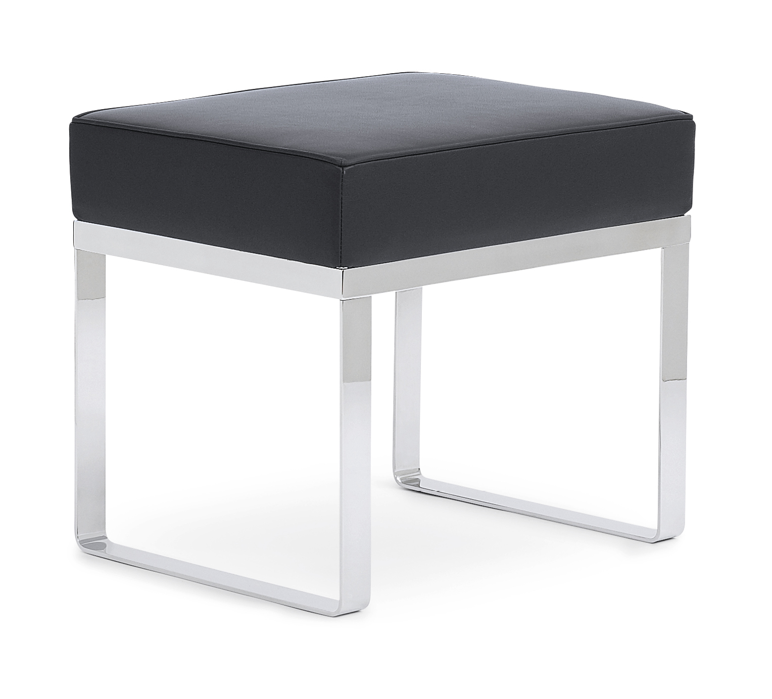 Stool. Frame chrome-plated flat steel. Beech seat frame. Upholstery polyurethane with polyester fibre. Cover in fabric or leather. Changeable gliders in felt or plastic.