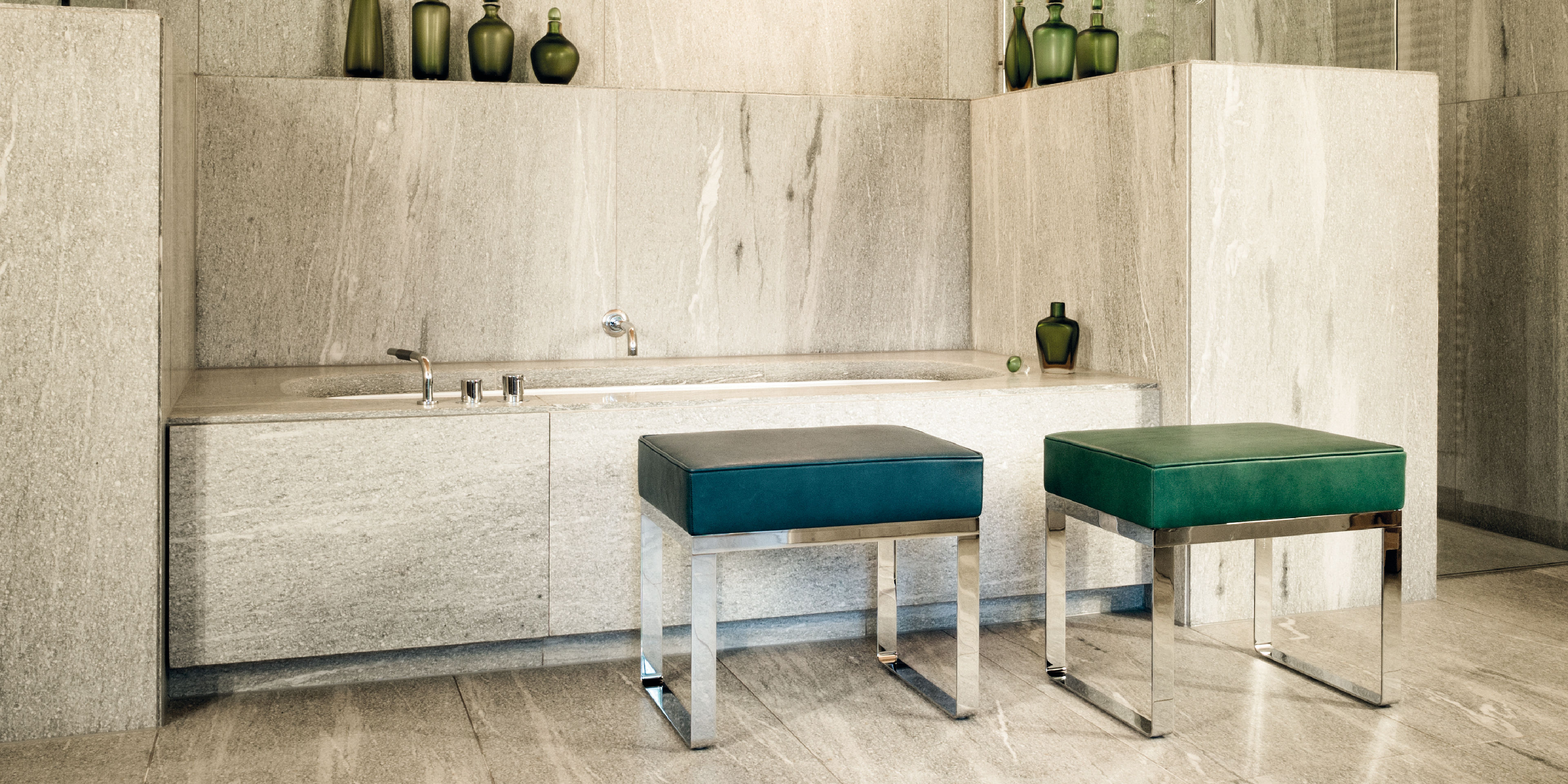 Banu is yet another gem from the Jewel Garden, which was the name of the Maharajah‘s palace of Indore for which Eckart Muthesius designed this stool. Through the use of polished stainless steel and a highly demanding working process, the frame appears, from all sides, to be made of a single piece. The exquisite, elegant stool decorated the bathroom of the Maharani. A slightly different version travelled on tracks through India – in the legendary saloon carriage of the Maharajah.