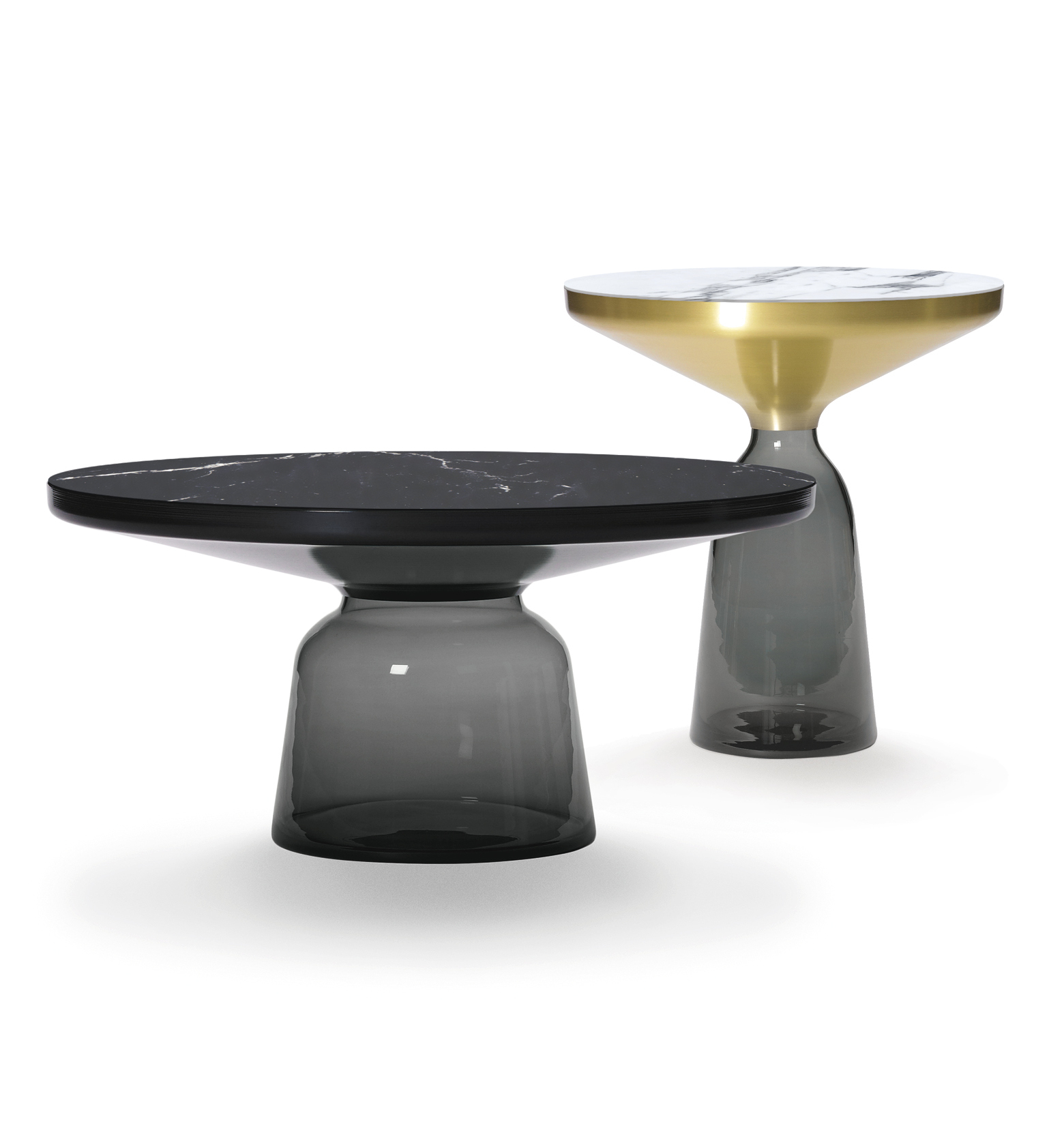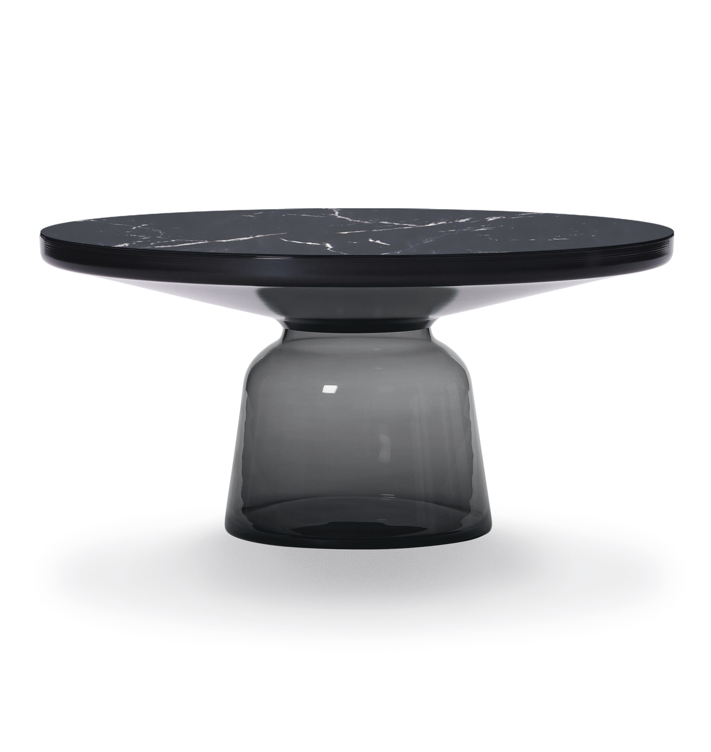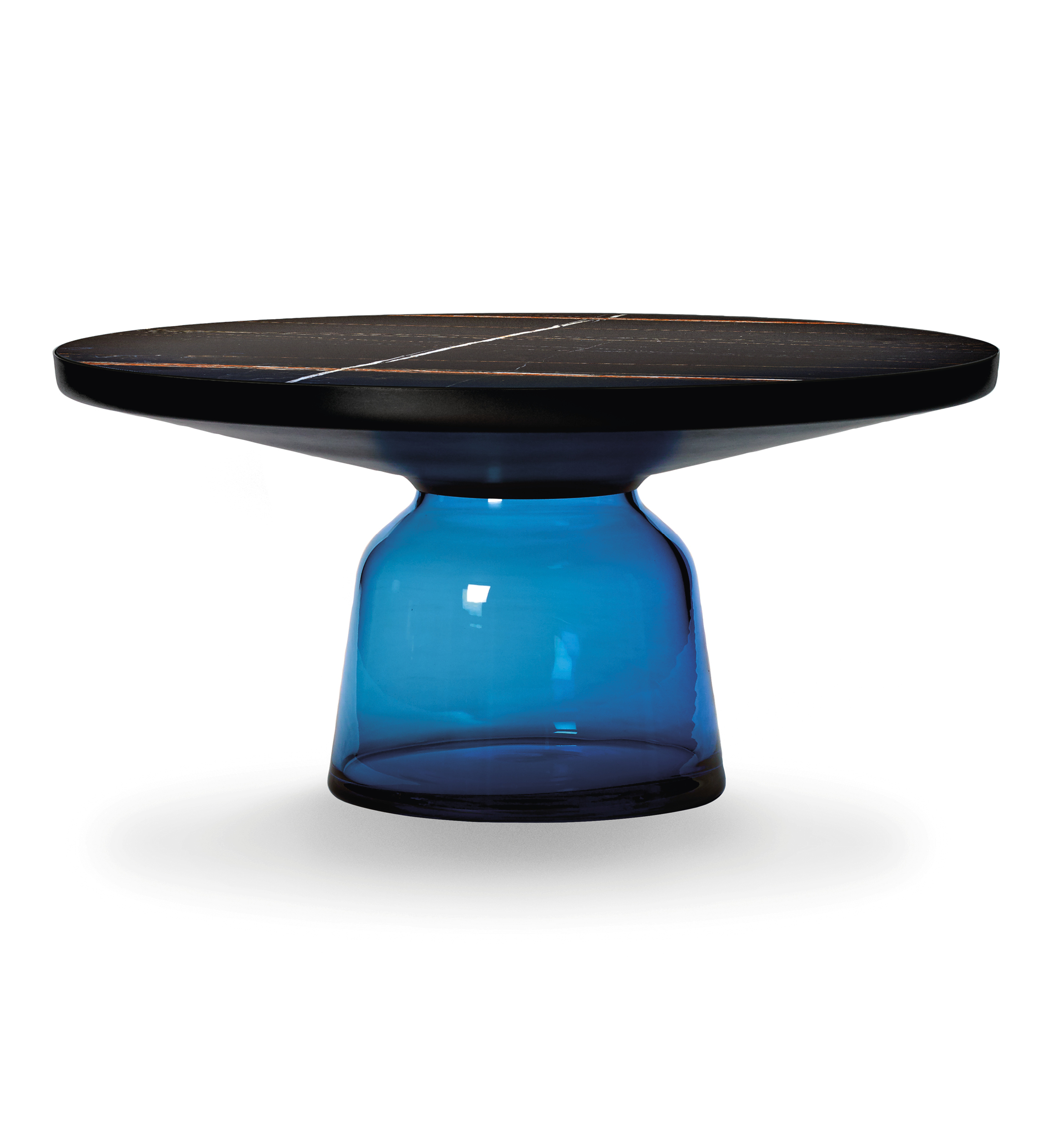 With its appealing reflective surfaces and contrasting materials, the side table adds a distinctive touch to living environments. It celebrates the beauty of the materials with their colours and surfaces, along with the workmanship. The Bell Table is a masterwork of traditional craftsmanship. Each table is handmade and has characteristic features such as irregularities in glass thickness, small bubbles or bumps in the glass.