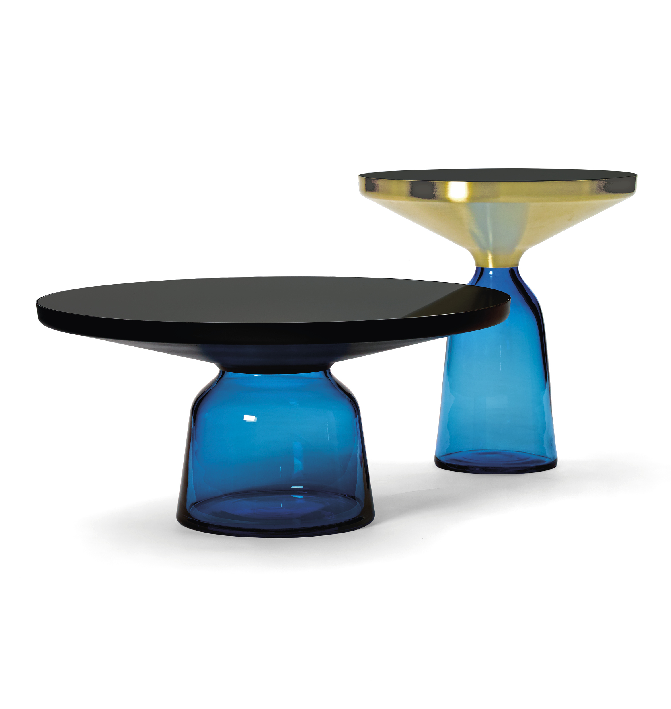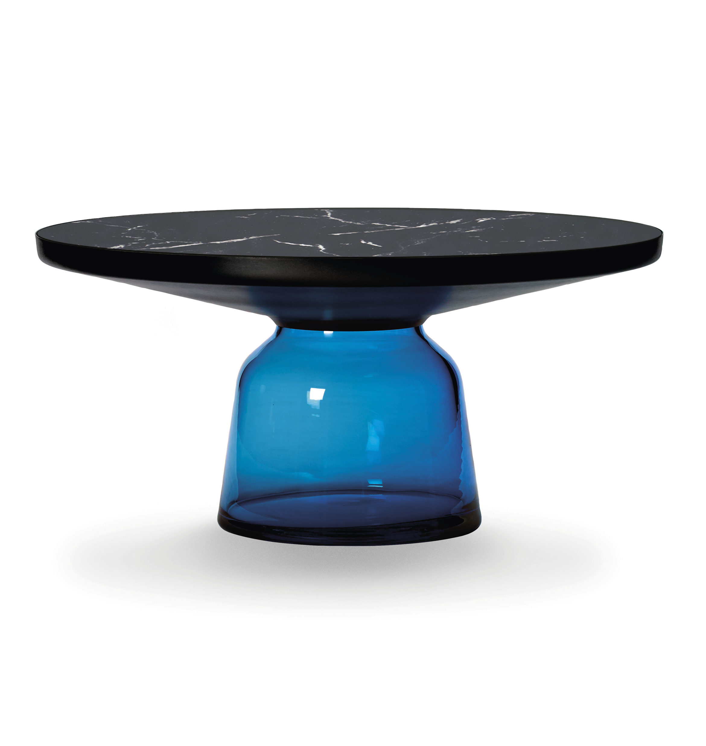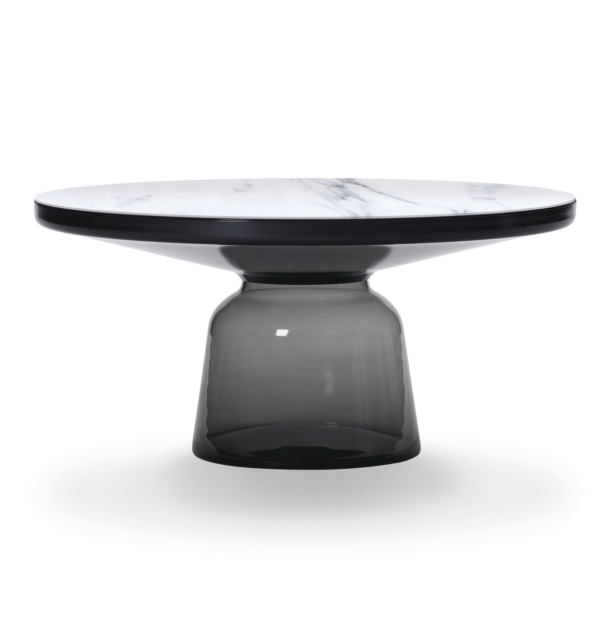 With its appealing reflective surfaces and contrasting materials, the side table adds a distinctive touch to living environments. It celebrates the beauty of the materials with their colours and surfaces, along with the workmanship. The Bell Table is a masterwork of traditional craftsmanship. Each table is handmade and has characteristic features such as irregularities in glass thickness, small bubbles or bumps in the glass.