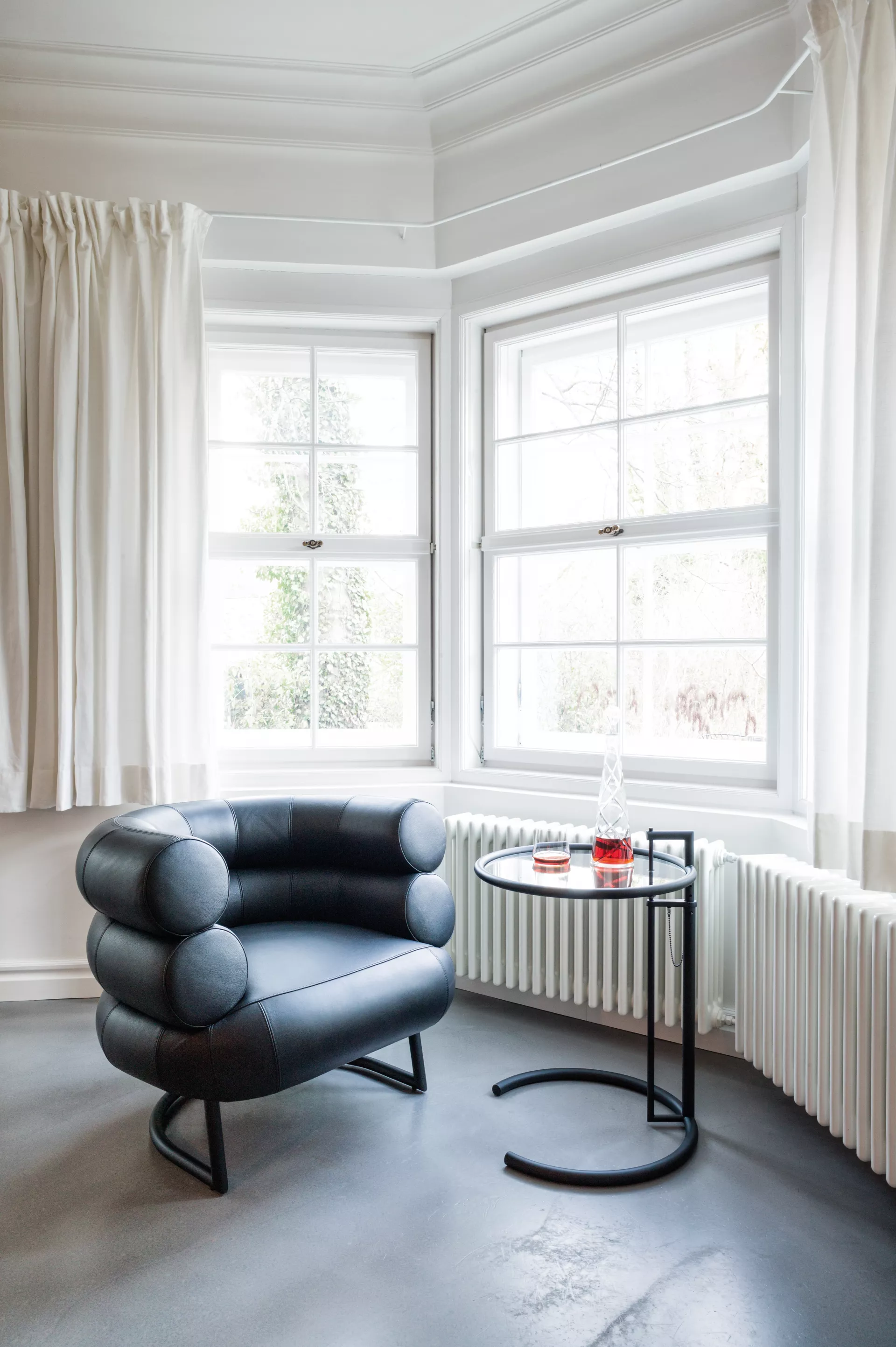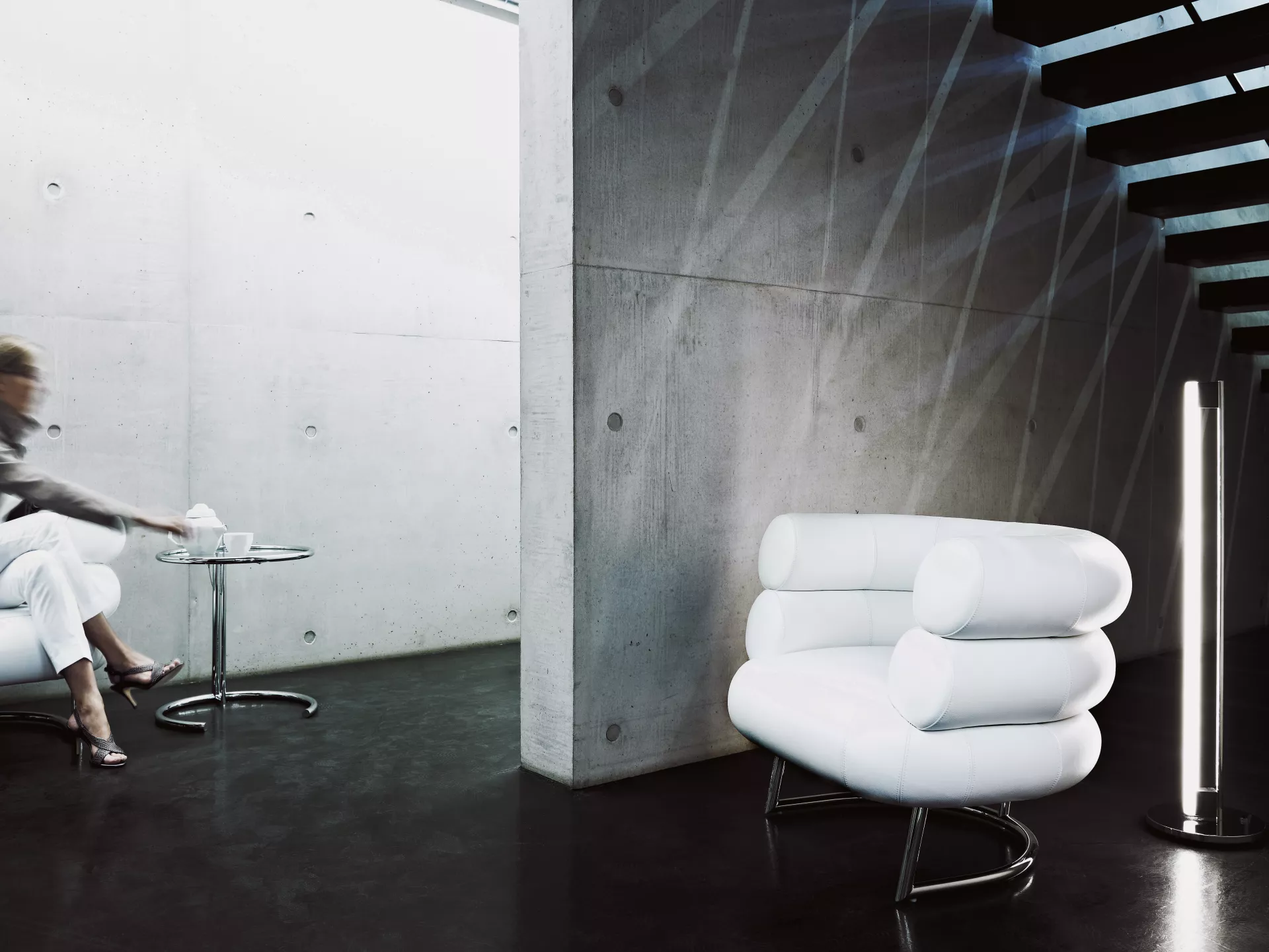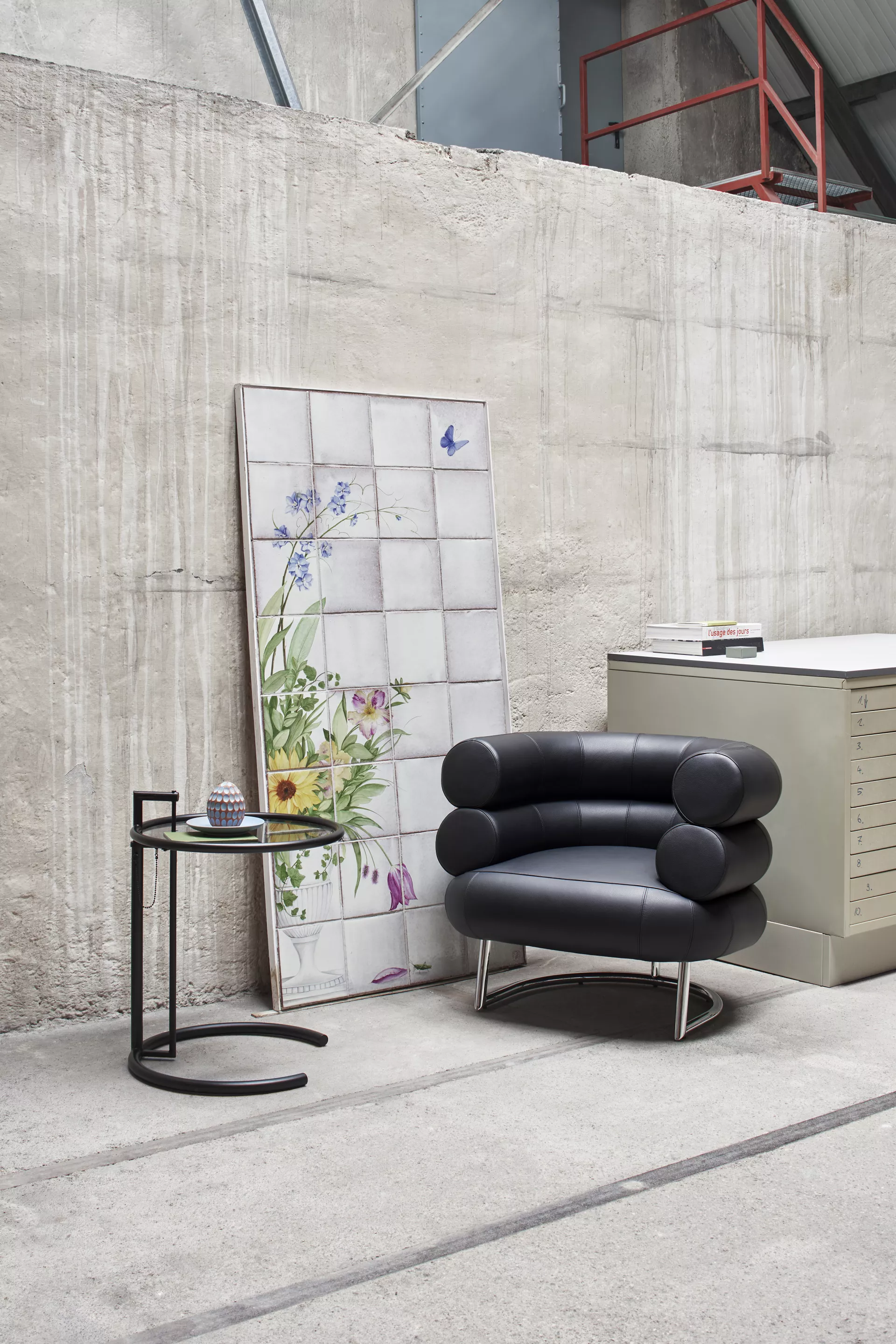 Bibendum is one of a kind. Nowhere in the history of design will one find an armchair that compares to this. It is captivatingly harmonious despite its size and unites a majestic impressiveness with charm and esprit like no other leather armchair. Eileen Gray underscored the character of her endearing parior lion with sly irony; she named it after the Michelin man, whose form this armchair