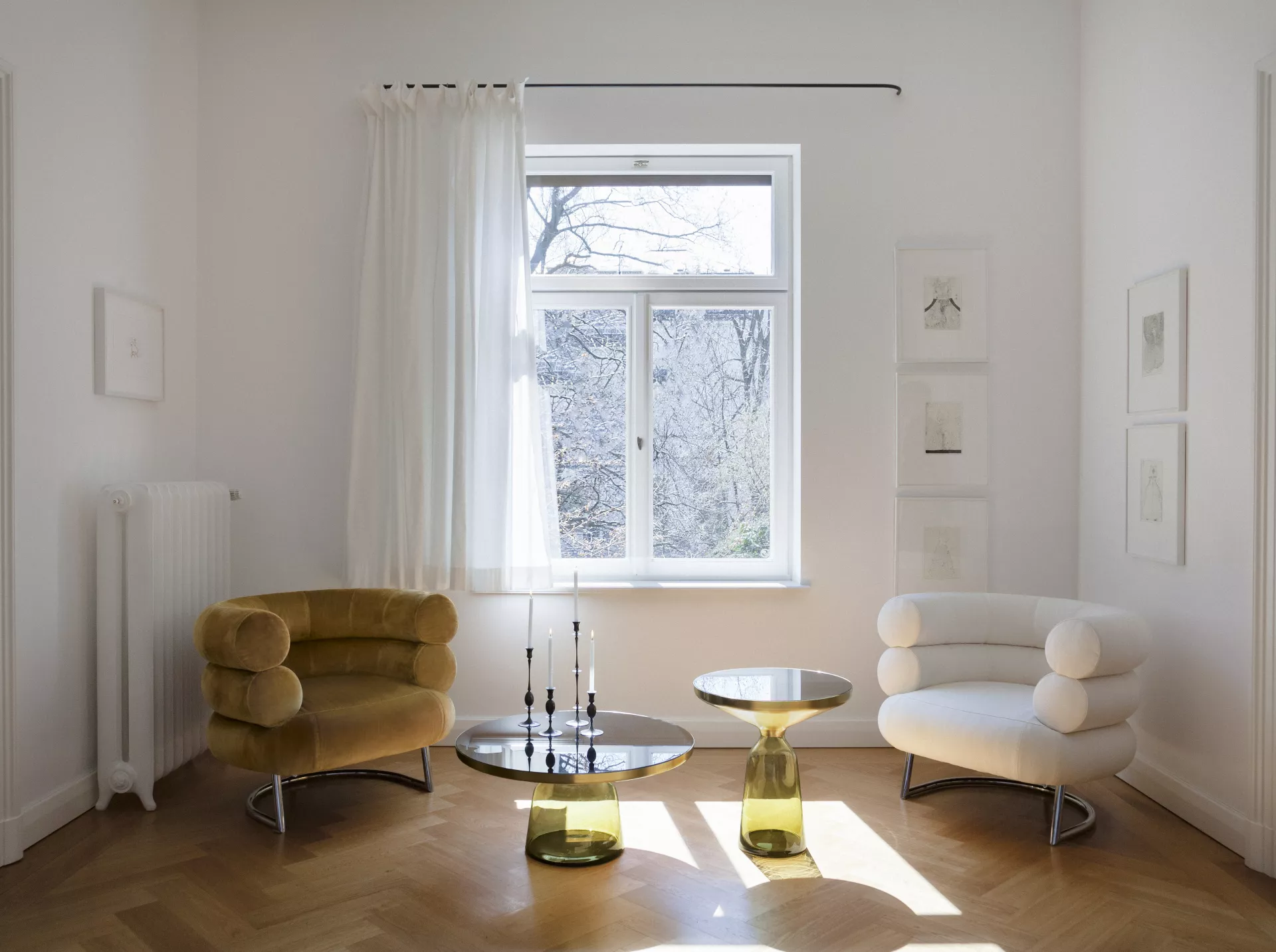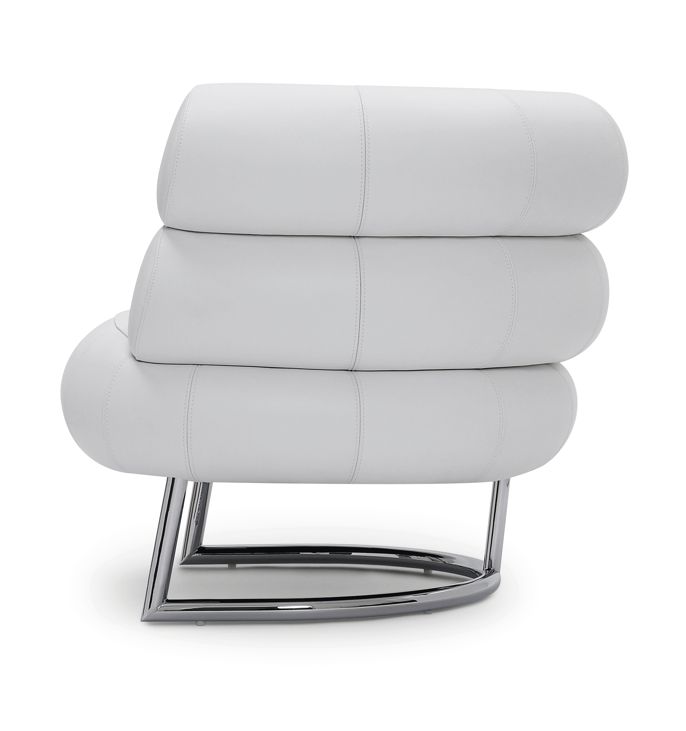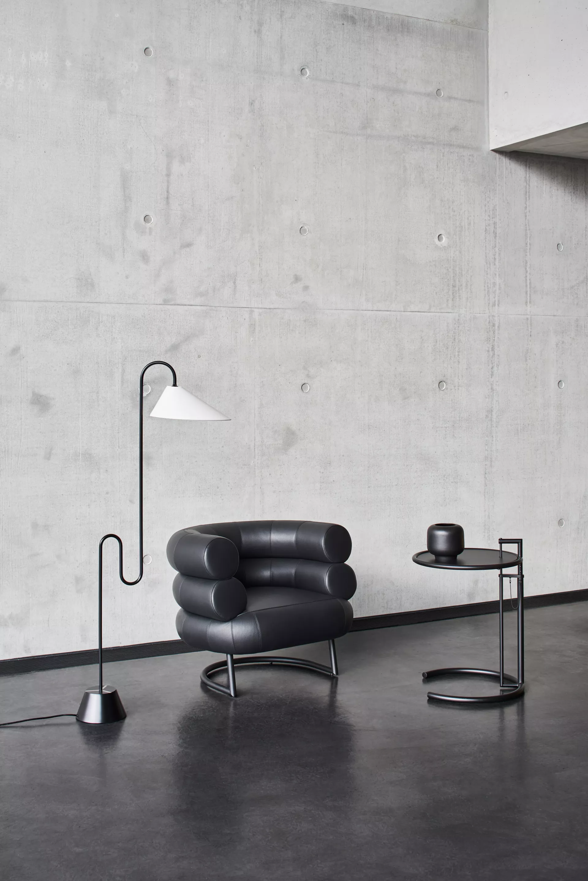 Bibendum is one of a kind. Nowhere in the history of design will one find an armchair that compares to this. It is captivatingly harmonious despite its size and unites a majestic impressiveness with charm and esprit like no other leather armchair. Eileen Gray underscored the character of her endearing parior lion with sly irony; she named it after the Michelin man, whose form this armchair