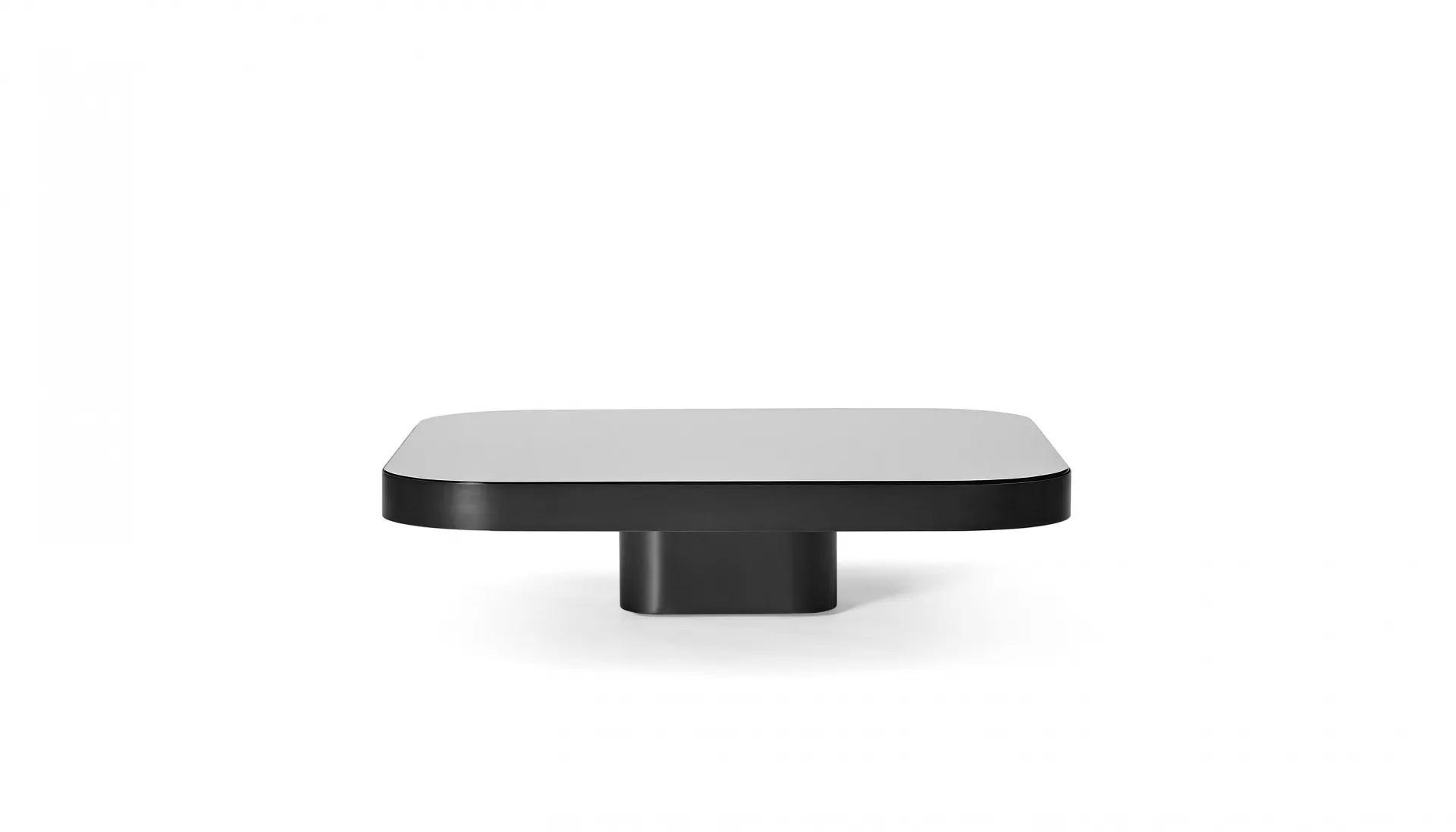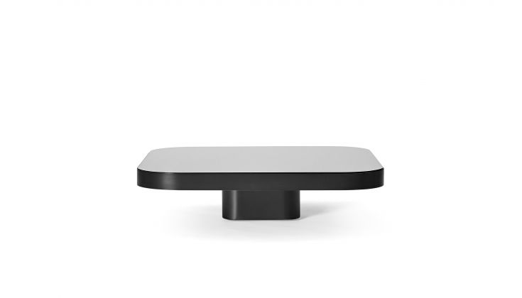 Inspired by 1970s lines and designs, Brazilian Guilherme Torres presents a side table or coffee table of casual elegance. The metal-covered surface of the body also quotes futuristic designs of the era, but it is a clearly contemporary design. The glass or marble covered tabletop floats above a base with rounded edges. The table is available in five sizes. Combined in different heights, the tables can be arranged as a group with overlapping tabletops, resulting in a dynamic sculpture with a generous and multi-level storage surface.