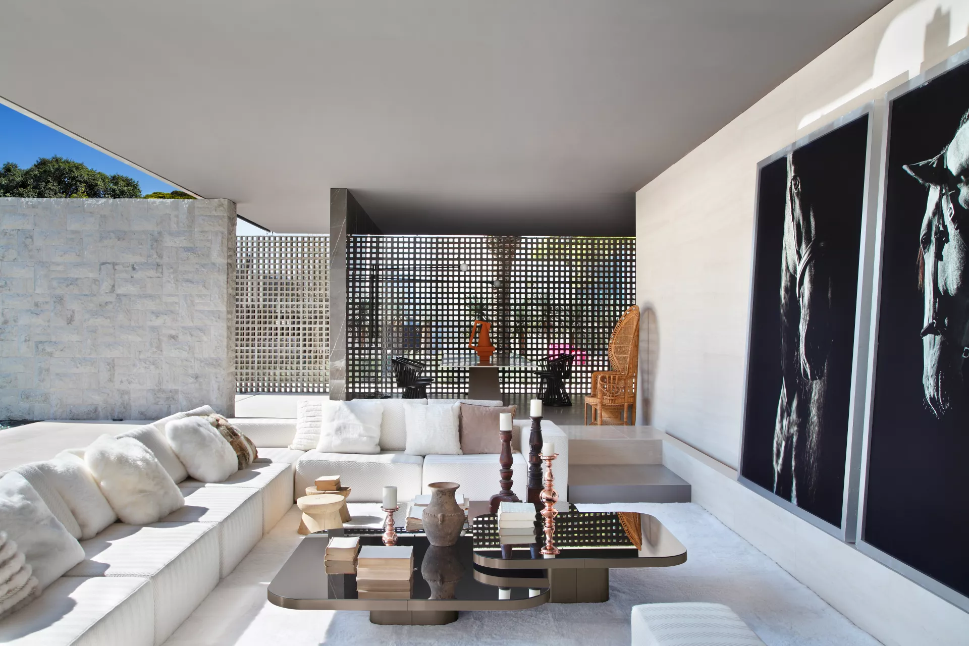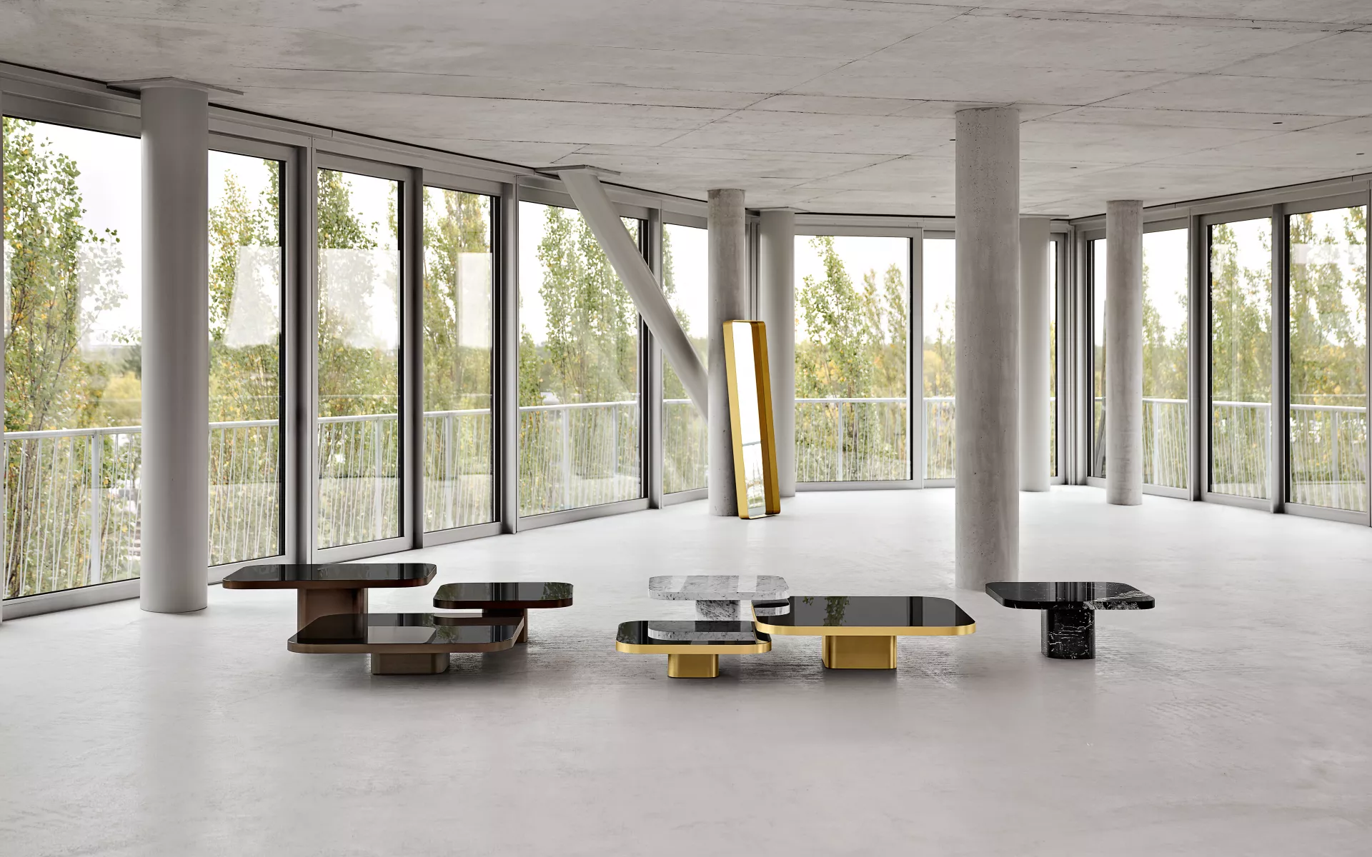 The ensemble is complemented by the Bow Coffee Table No. 3 Marble, completely made of white or black marble. Combined with the other sizes in brass, it establishes an interesting contrast of materials.
