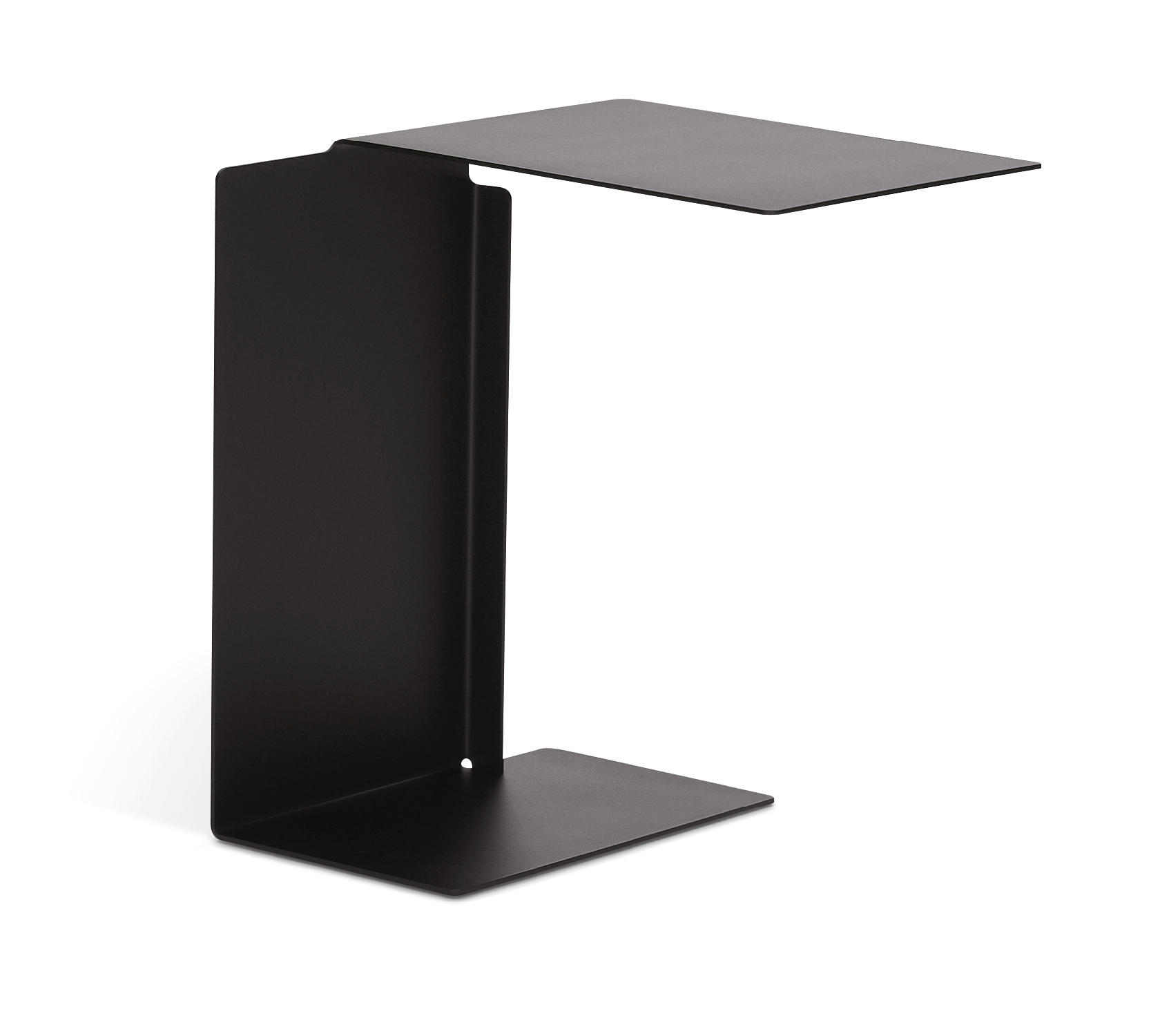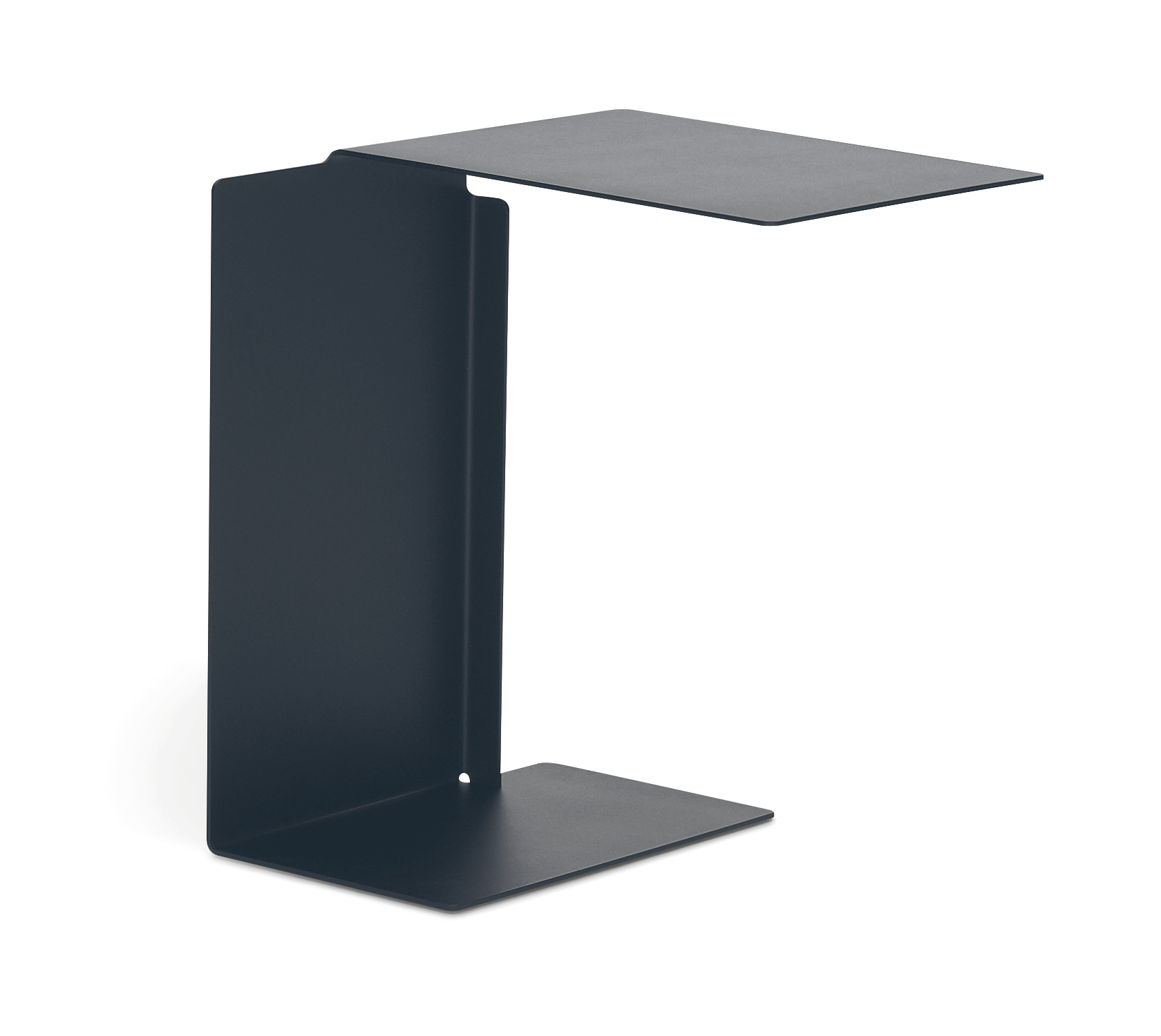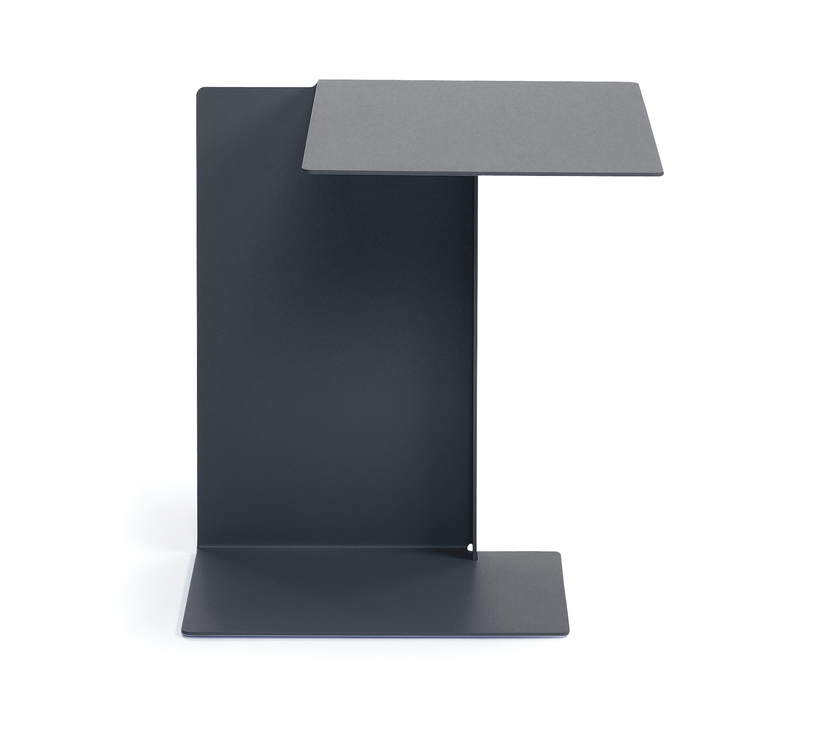 Side table. Sheet steel, powder-coated with fine texture in various colours. Bottom covered with polyethylene. Outdoor Version: Sheet steel, weatherproof powder-coated with fine texture in various colours. Plastic gliders.