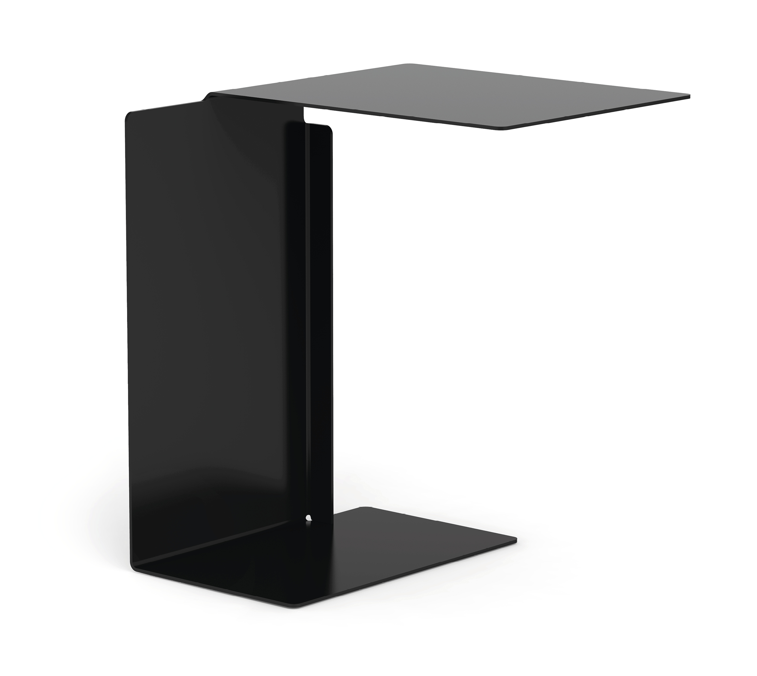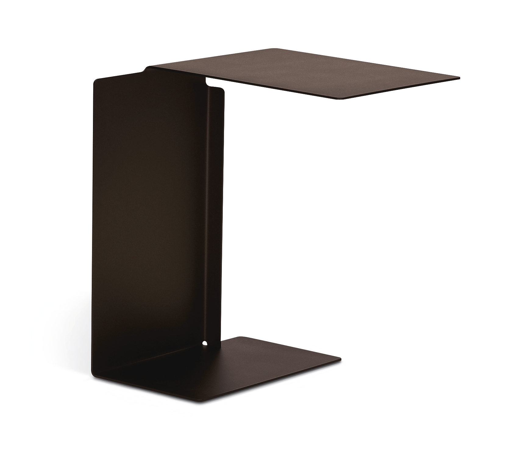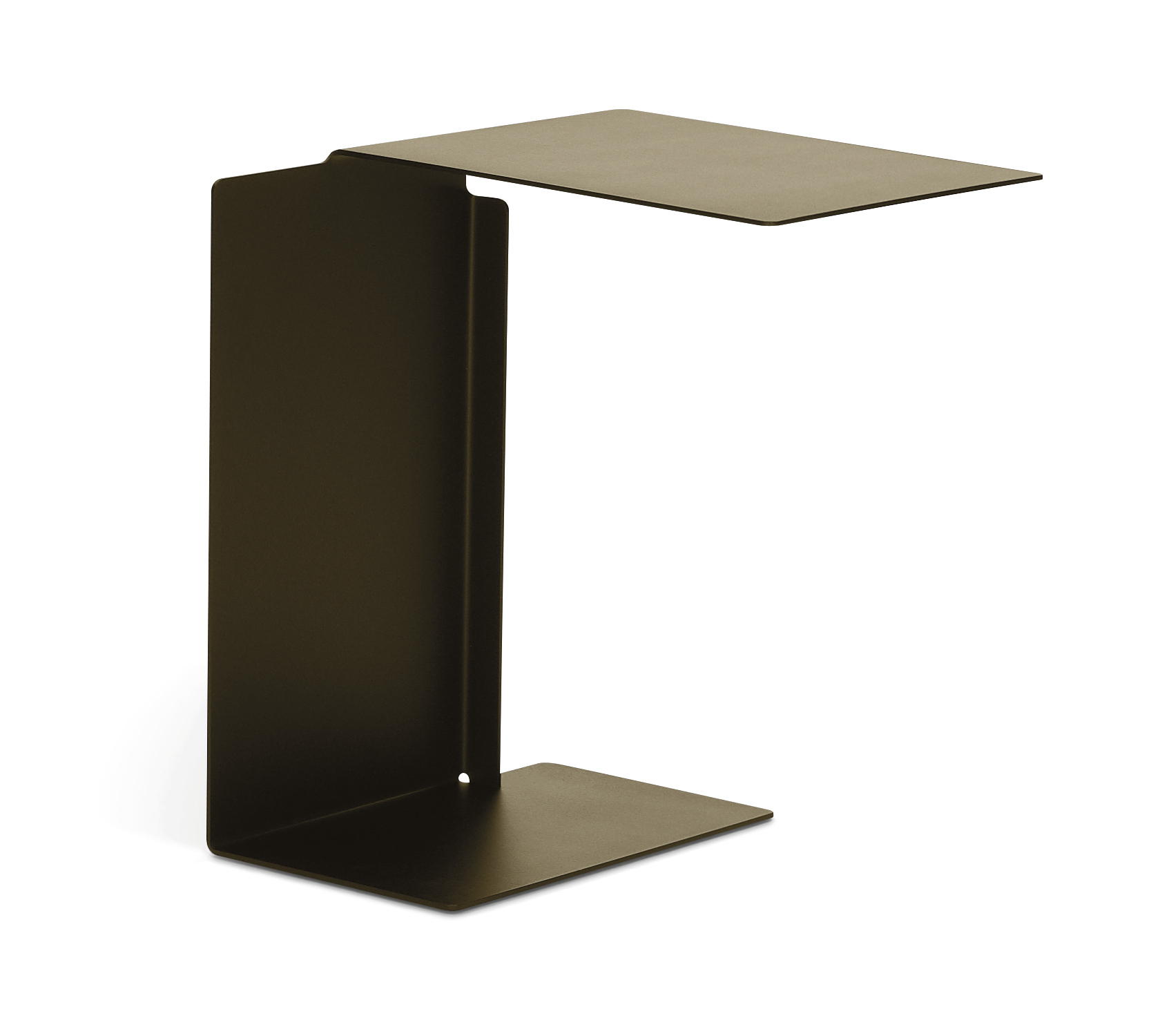 Side table. Sheet steel, powder-coated with fine texture in various colours. Bottom covered with polyethylene. Outdoor Version: Sheet steel, weatherproof powder-coated with fine texture in various colours. Plastic gliders.