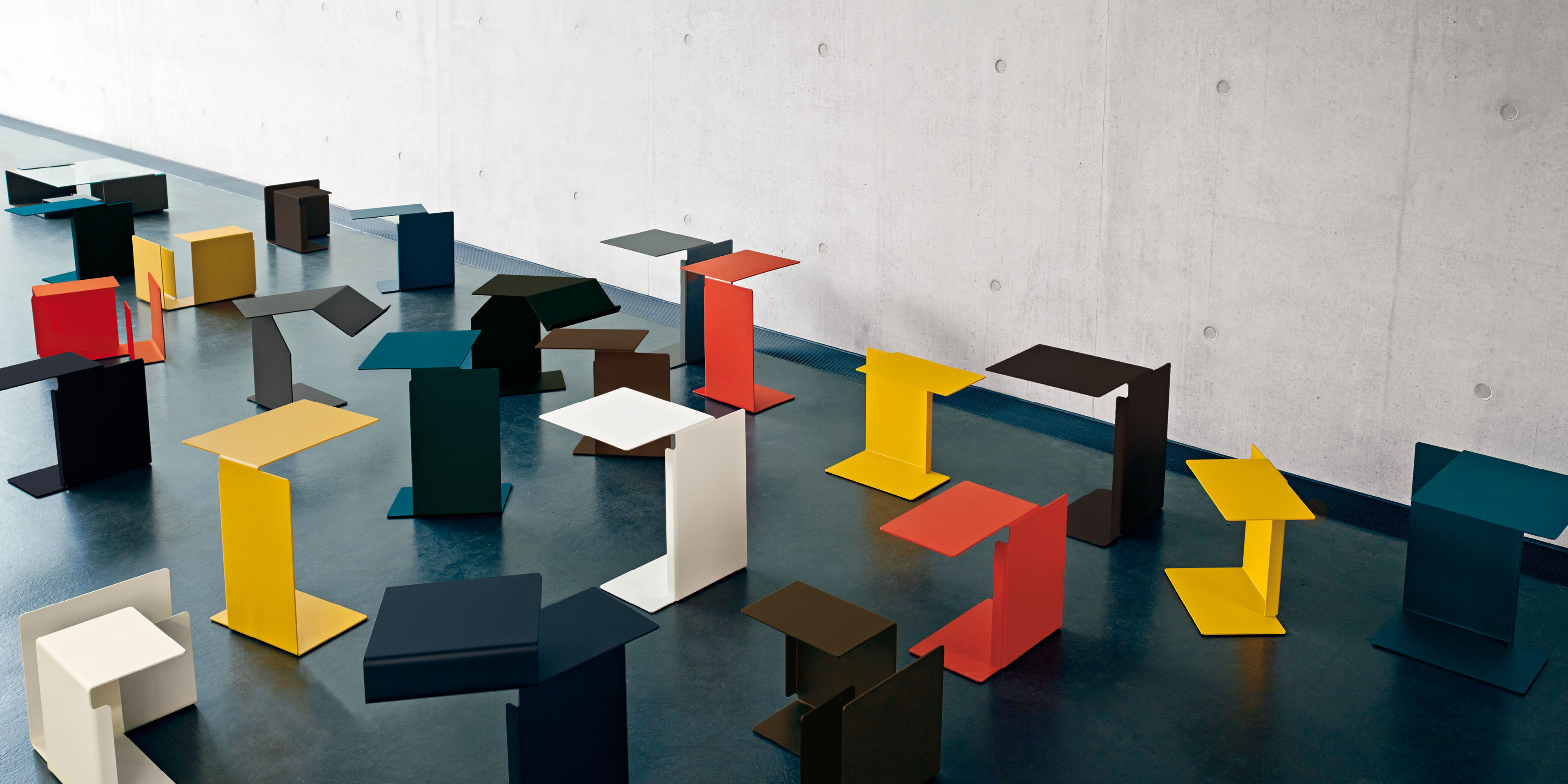 Side table? Notebook stand? Reference library? Konstantin Grcic‘s new series of sheet metal tables is open to a wide range of interpretations and uses and, most importantly, to the imagination. Just as words are built from letters, the Diana tables combine with other furniture and objects in ever-varying visual contexts. With the Diana alphabet from A to F, a living room can be transformed into a cafe – or into a word in an entirely new, entirely personal language.