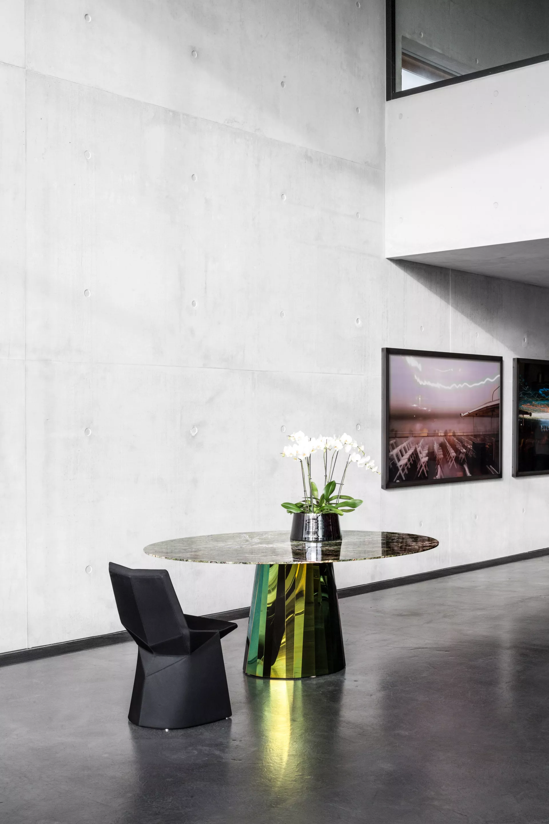 If you are looking for a chair that is like no other chair, look no further: Mars is a truly unique phenomenon. By ruthlessly dispensing with right angles, Konstantin Grcic has given it a surface geometry made up of slopes and edges which reveals a new surprise from every point of view. Good to know that this avant-garde chair still fulfi ls all of the prosaic requirements of everyday sitting. With a slight inclination to the rear, the lowered seat hollow makes it extremely comfortable.