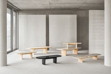 The Matéria Low Board series is characterised by its unusual dimensions and aura of tranquillity. When taking a closer look, however, its nearly monochromatic appearance is revealed as an interplay of the porous travertine stone and smoothly finished wood. Matéria evokes an intuitive urge to touch the surfaces, to feel the natural textures. Originally a purely experimental design by German designer Christian Haas, it was expanded into a trio in cooperation with ClassiCon. Matéria is available in three different sizes and currently two surfaces. Individually or in combination, the handcrafted low boards rightfully take centre stage due to their materiality and reveal the sensual effect of reductionism.