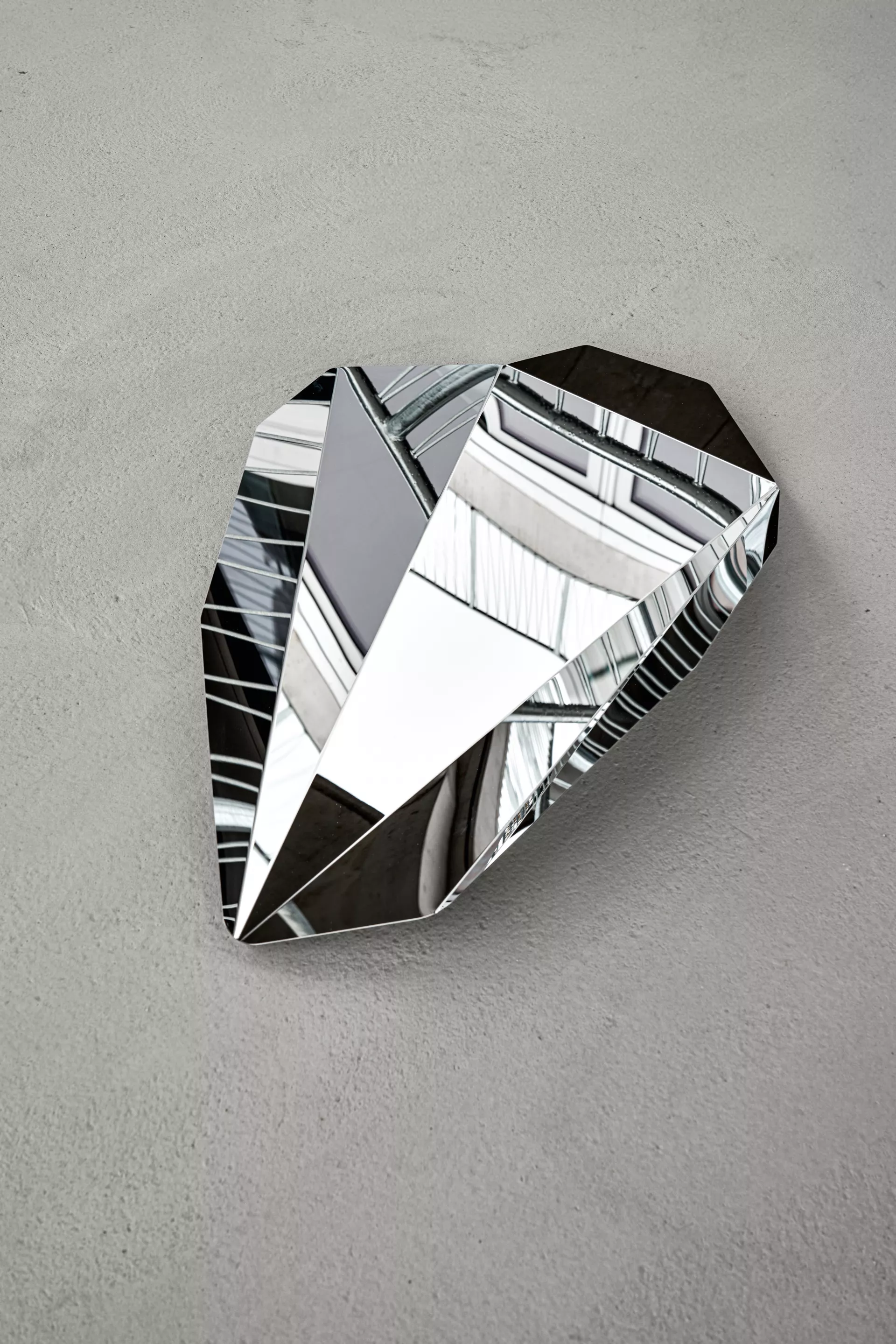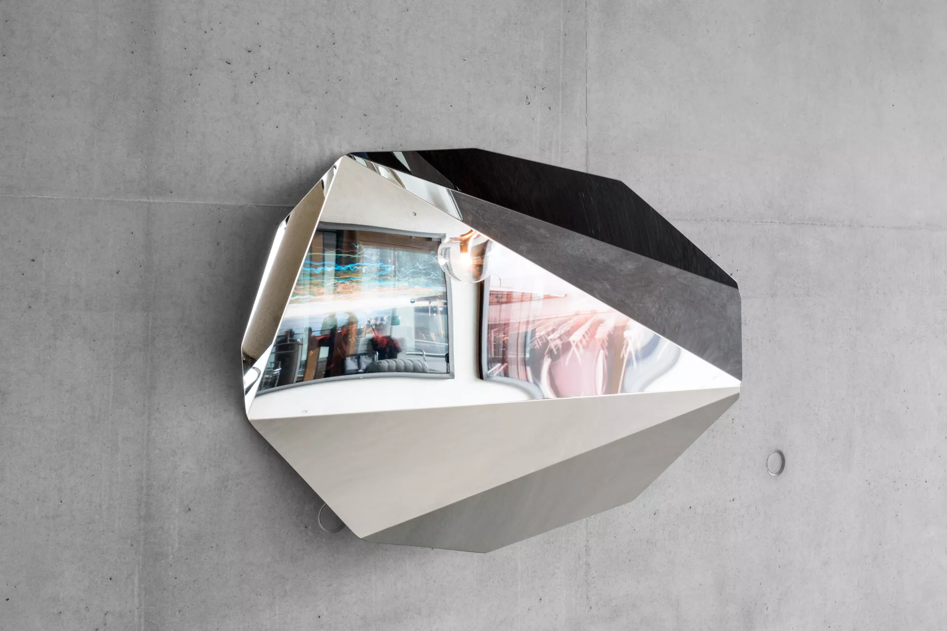 With her Piega Mirror, French designer Victoria Wilmotte brings an object of unusual crystalline elegance and astonishing geometry to living environments. The mirror-polished stainless steel makes the surface of the object look like transparent mirrored surfaces. The bends and folds that gave Piega its name create a fascinating play with the refraction of light and colour reflections in any room. With its three-dimensional structure, the mirror thus becomes a vivid object.