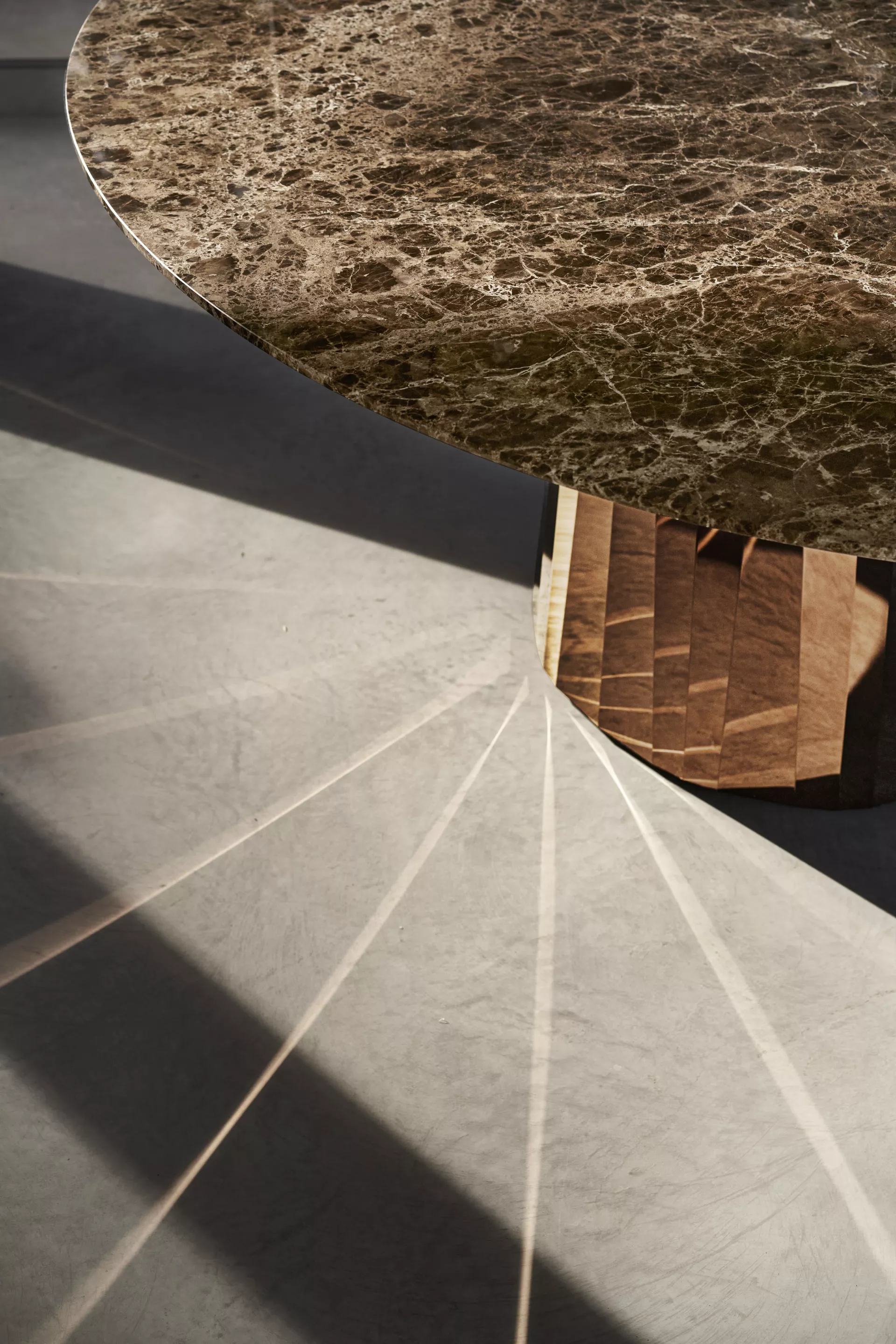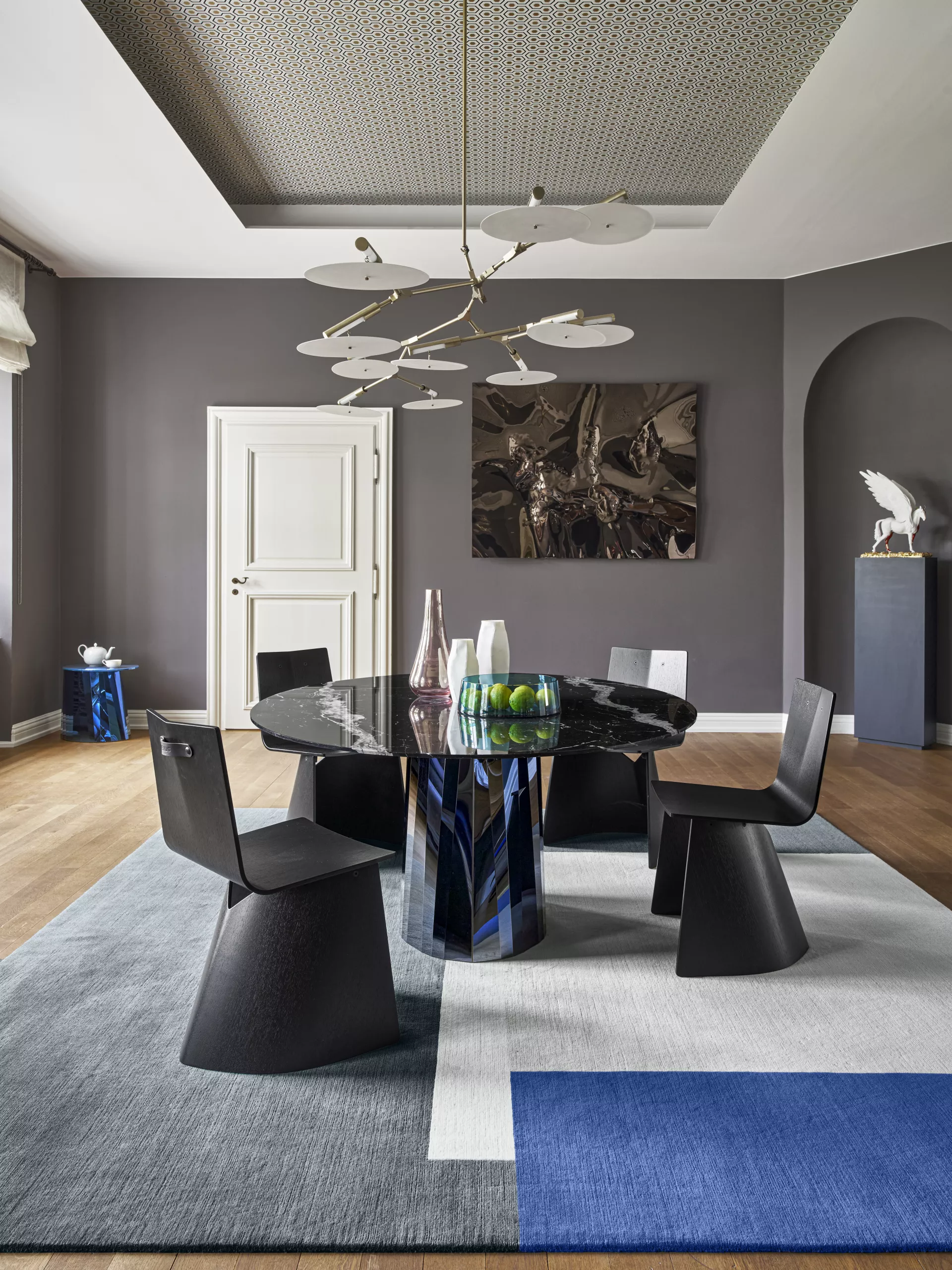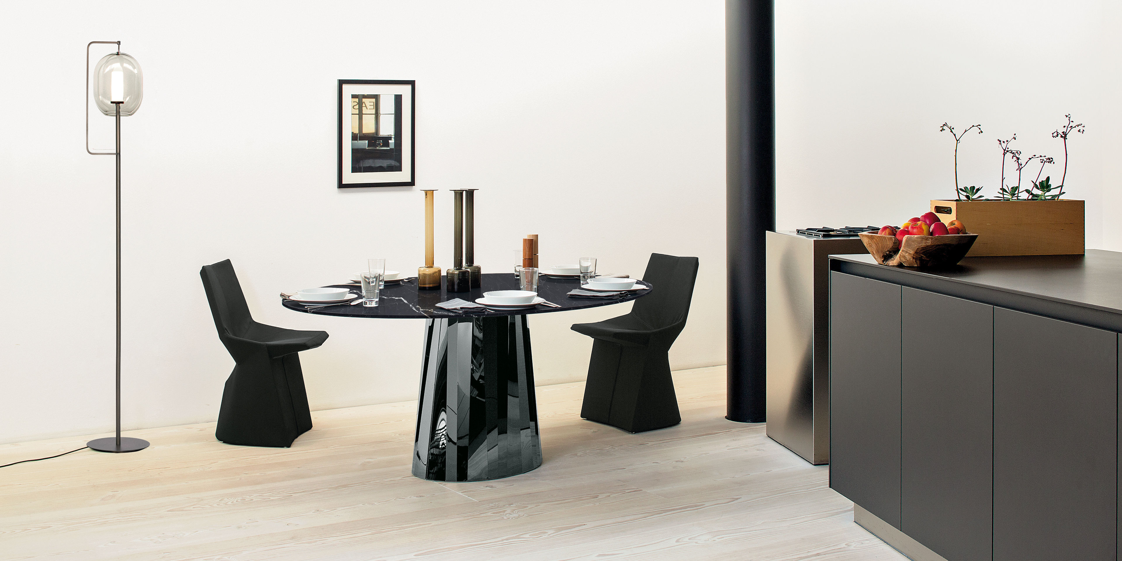 With the Pli table series French designer Victoria Wilmotte brings objects of unusual crystalline elegance and astonishing geometry to living environments, dining rooms or entrance areas. The bends and folds that gave Pli its name almost make the stainless steel base look like an oversized finely polished precious stone. The table’s oval forms of the base and tabletop establish an attractive contrast with the facets of the base, which create a fascinating play with light friction and colour reflections in the room. The Pli Table can be used as a representative dining table for up to eight persons. In the entrée or foyer, galleries and stores the table can also be used as a spectacular eye-catcher.