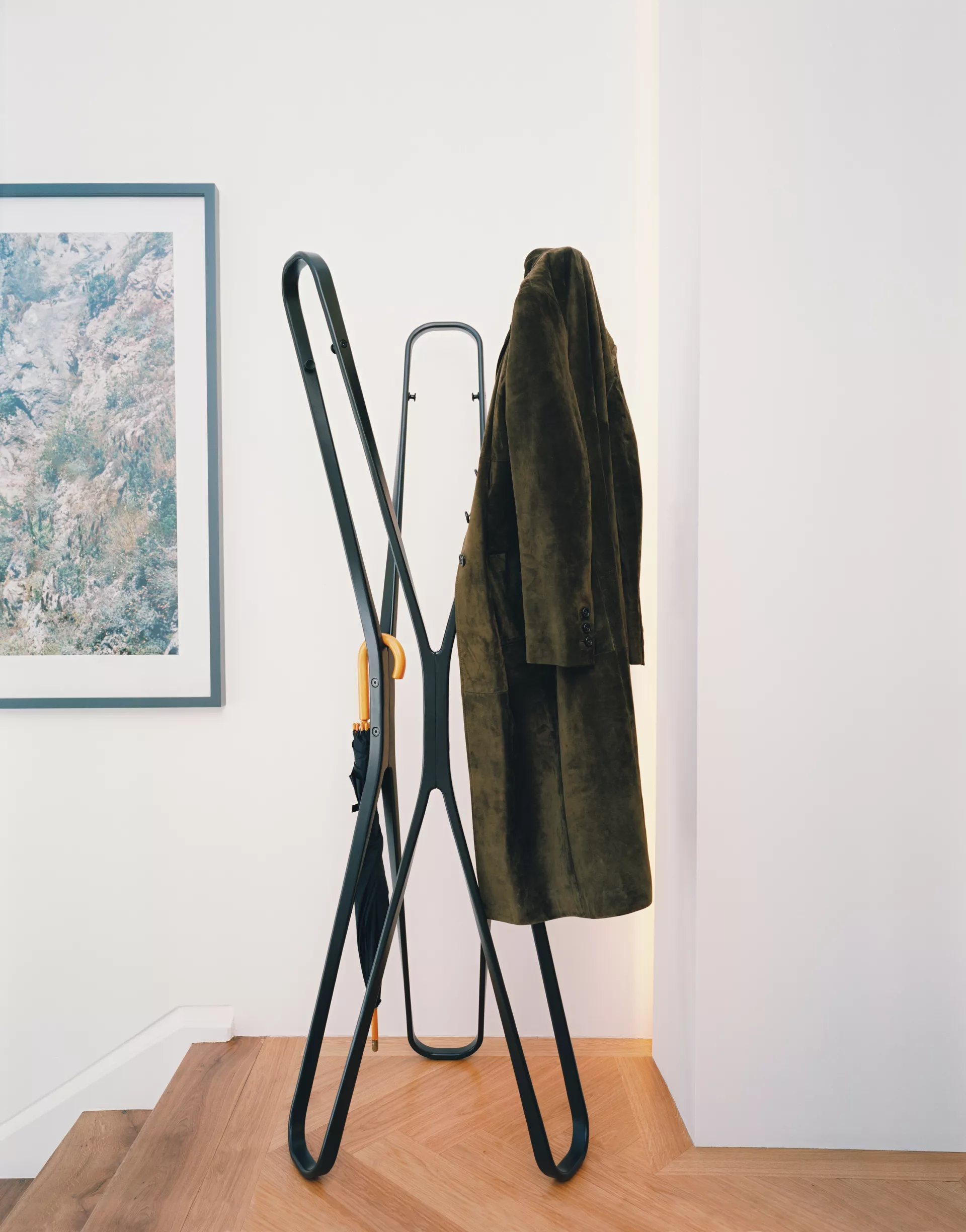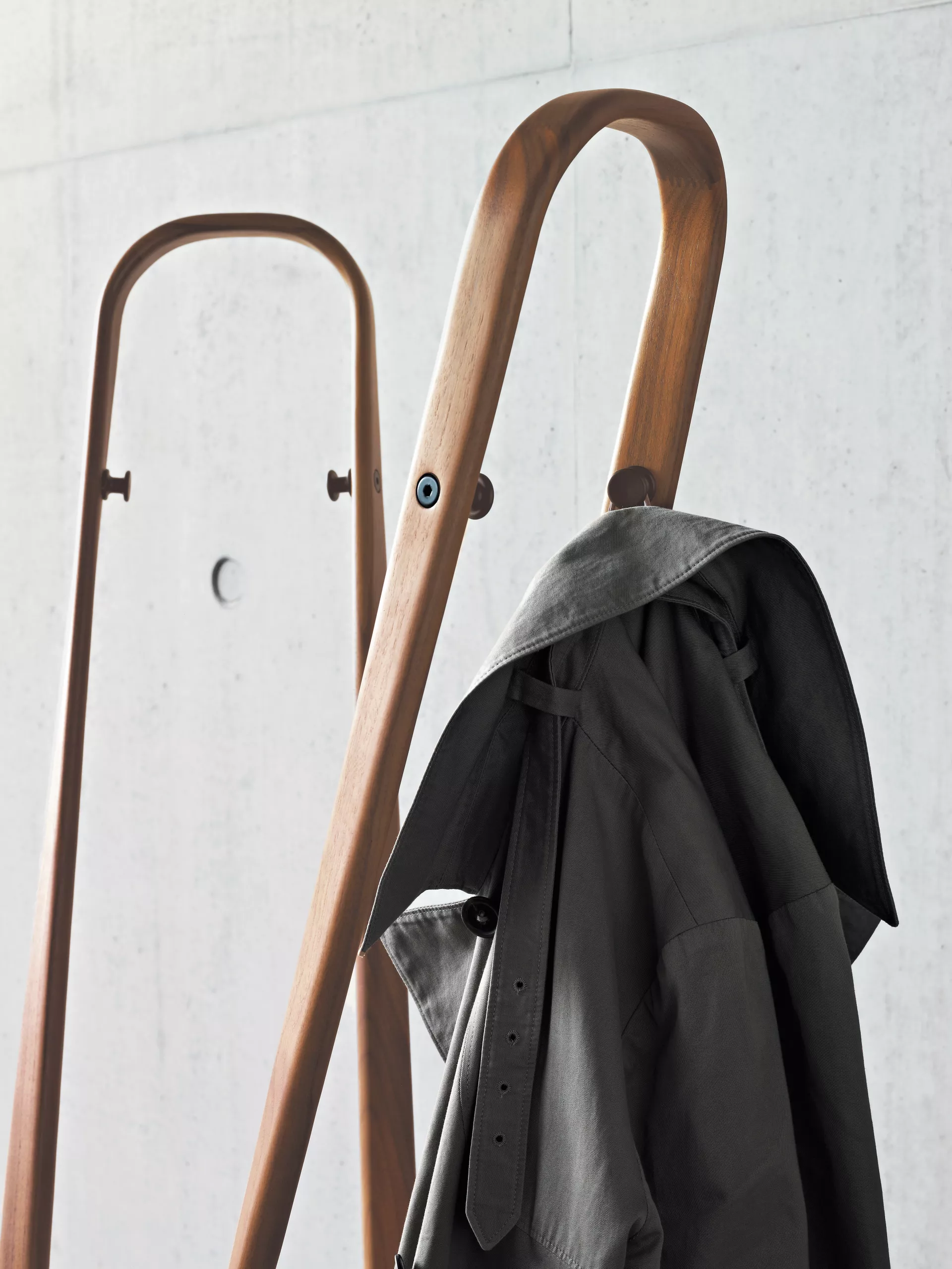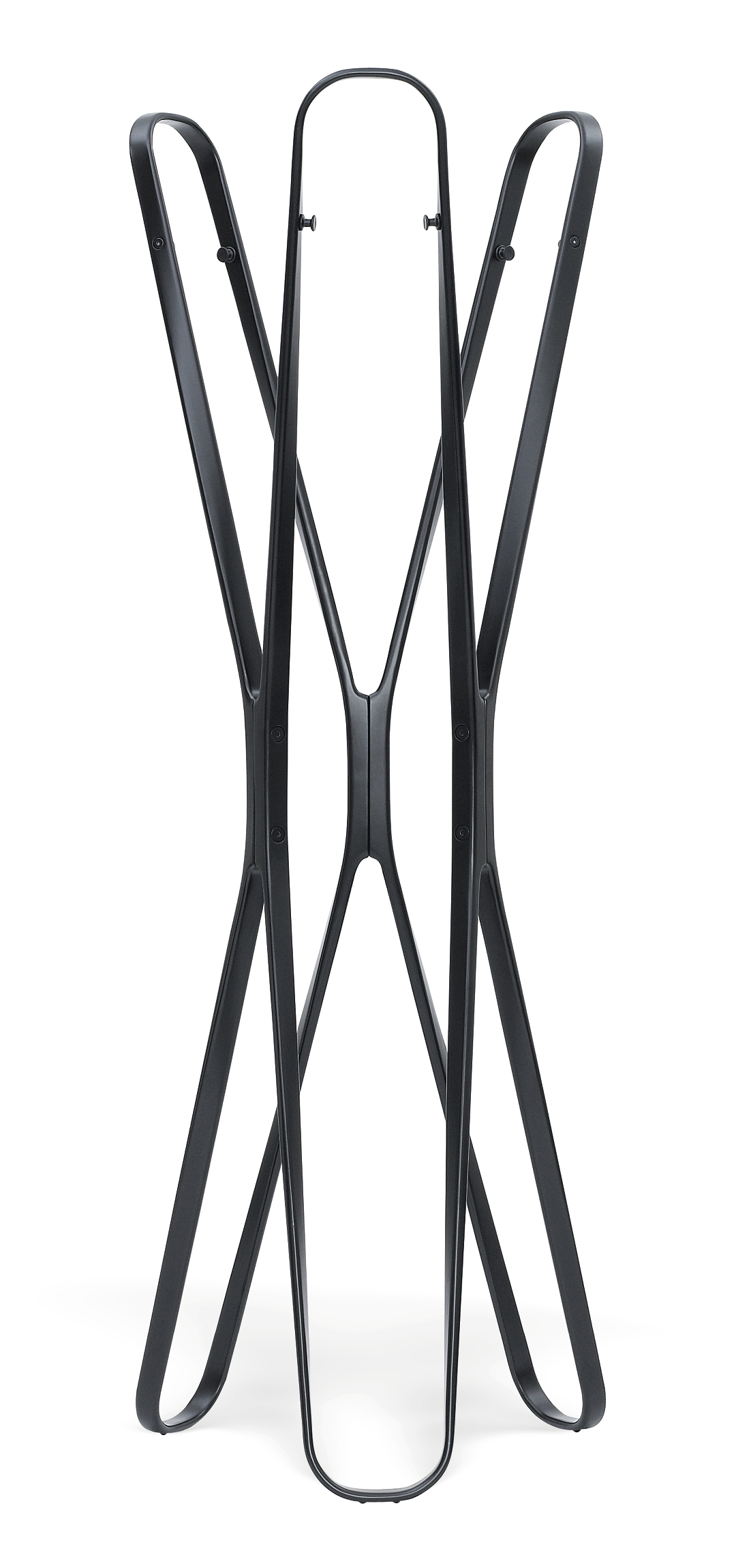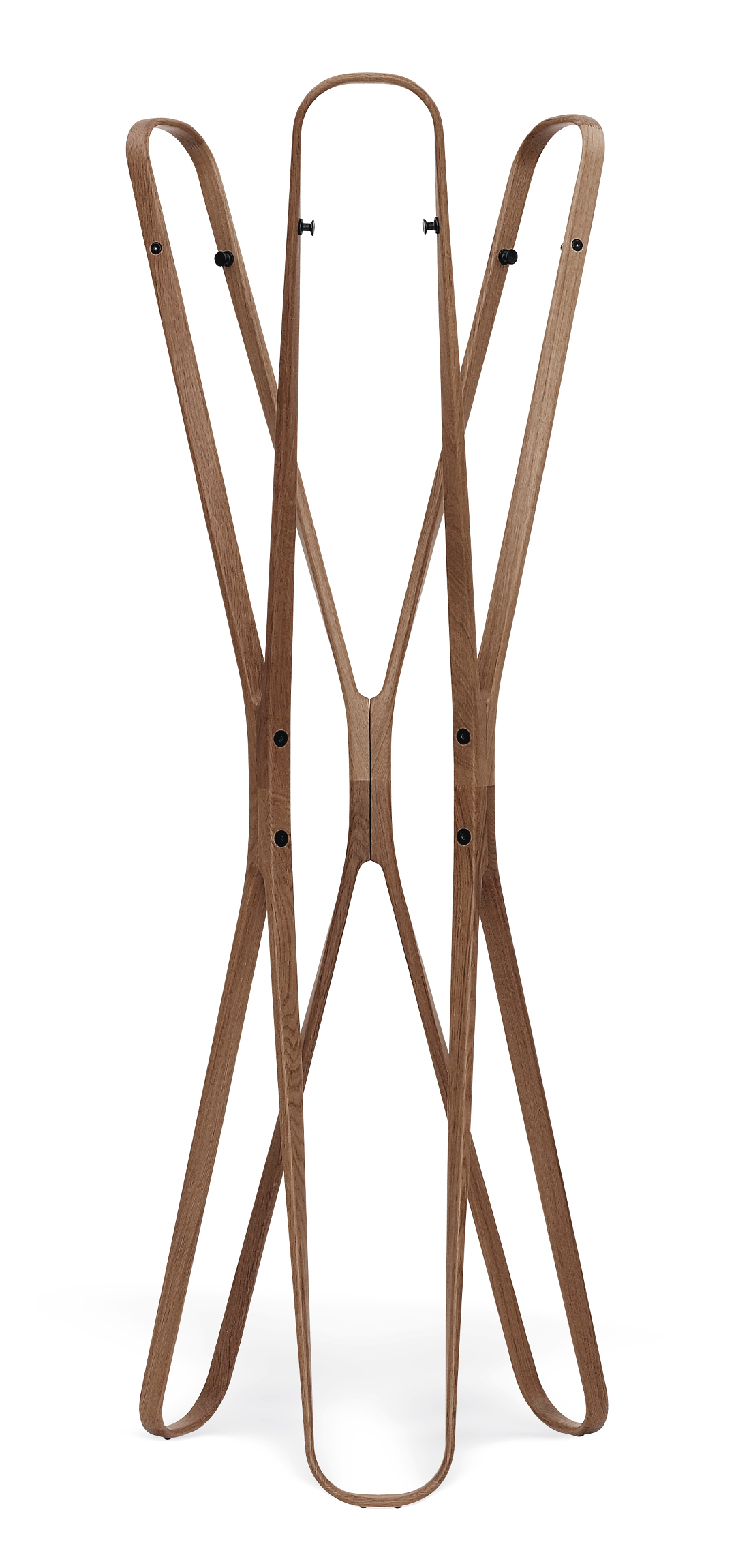 Saturn is such a sculptural, cheerfully dancing object, you’ll hate to hide it under a bunch of coats. But Saturn by all means makes a perfect, if unusual, coat stand. Its generous wooden arches provide the ideal place to hang coats and jackets or perhaps a cap. Saturn is also equipped to handle formal occasions with grace: on every arch are two metal hooks to hang coats the conventional way on hangers. Whichever way you prefer – you have an eye-catching coat stand at your service.