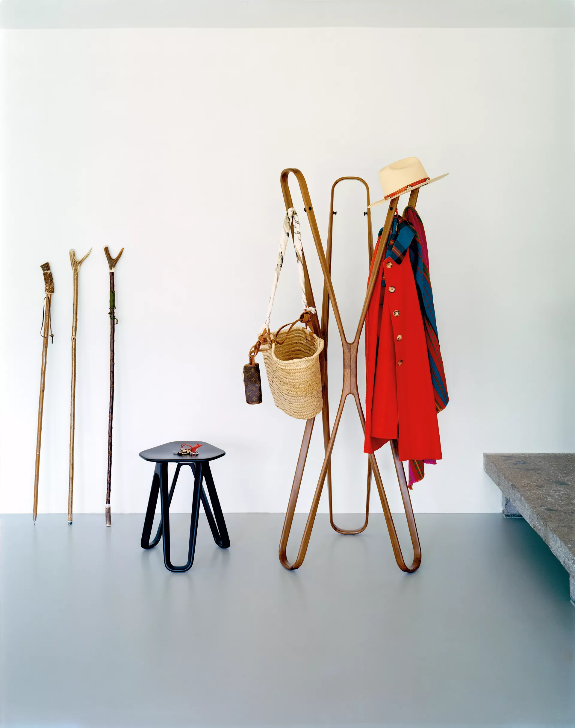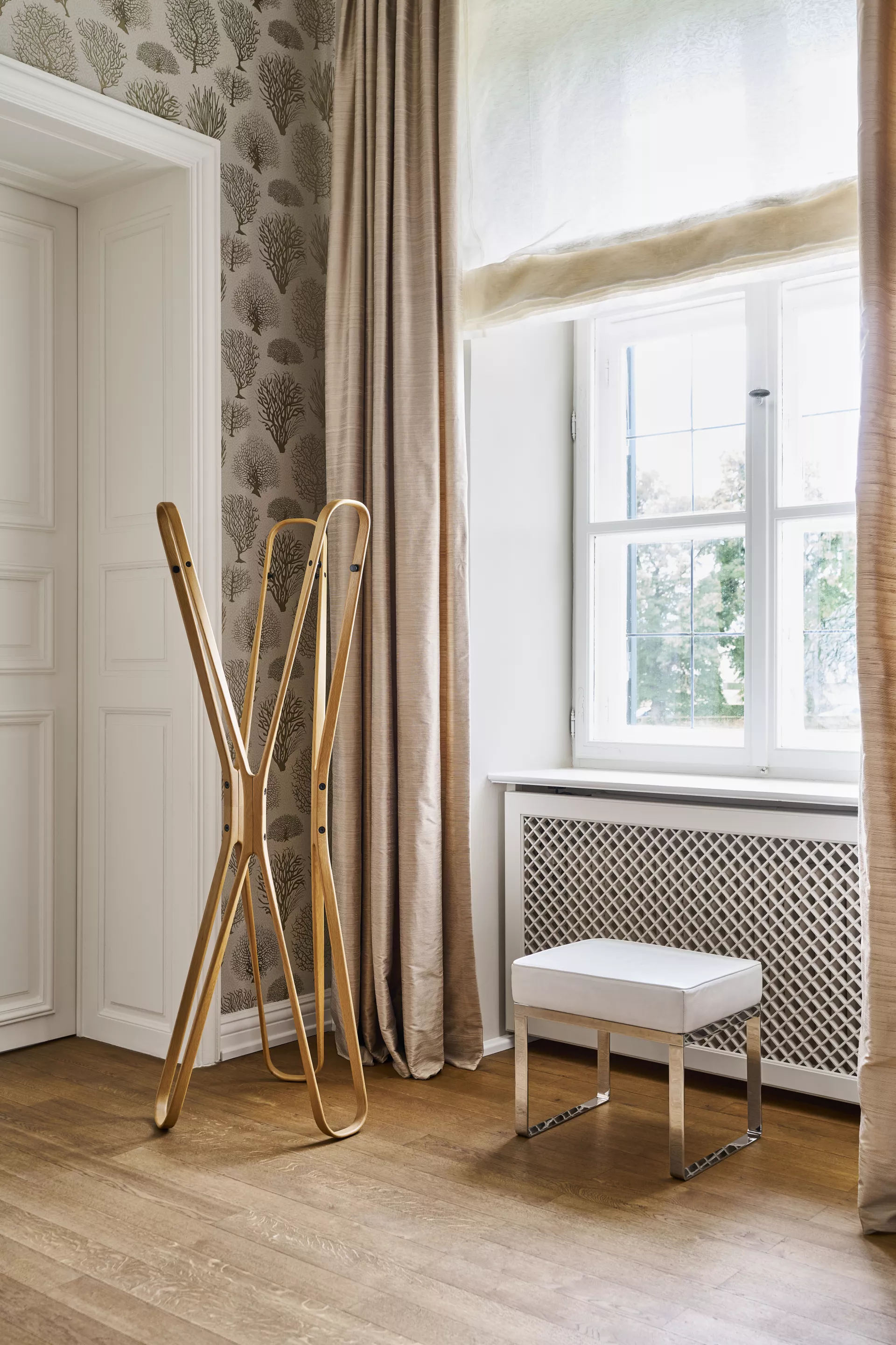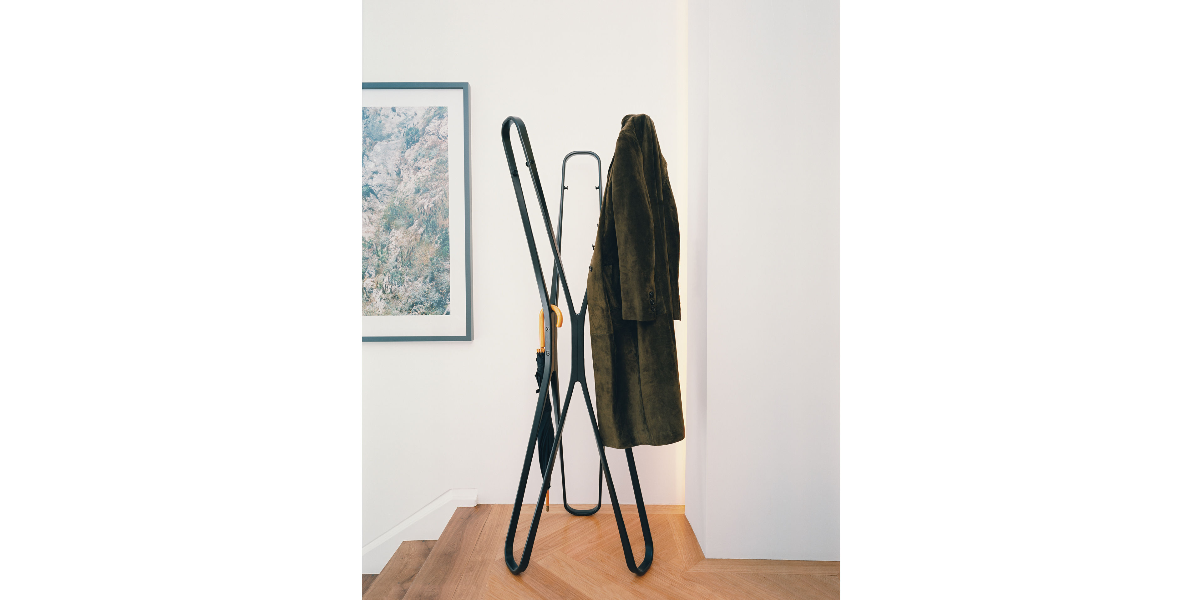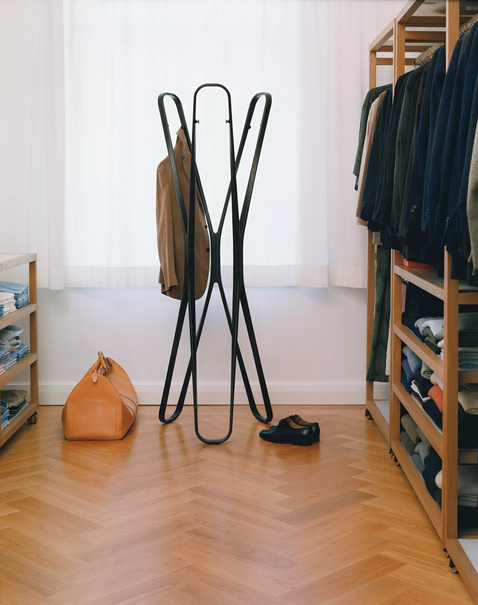 The arcs of this wardrobe stand present harmonious curves; it is so beautiful, however, that we enjoy seeing it empty the most.