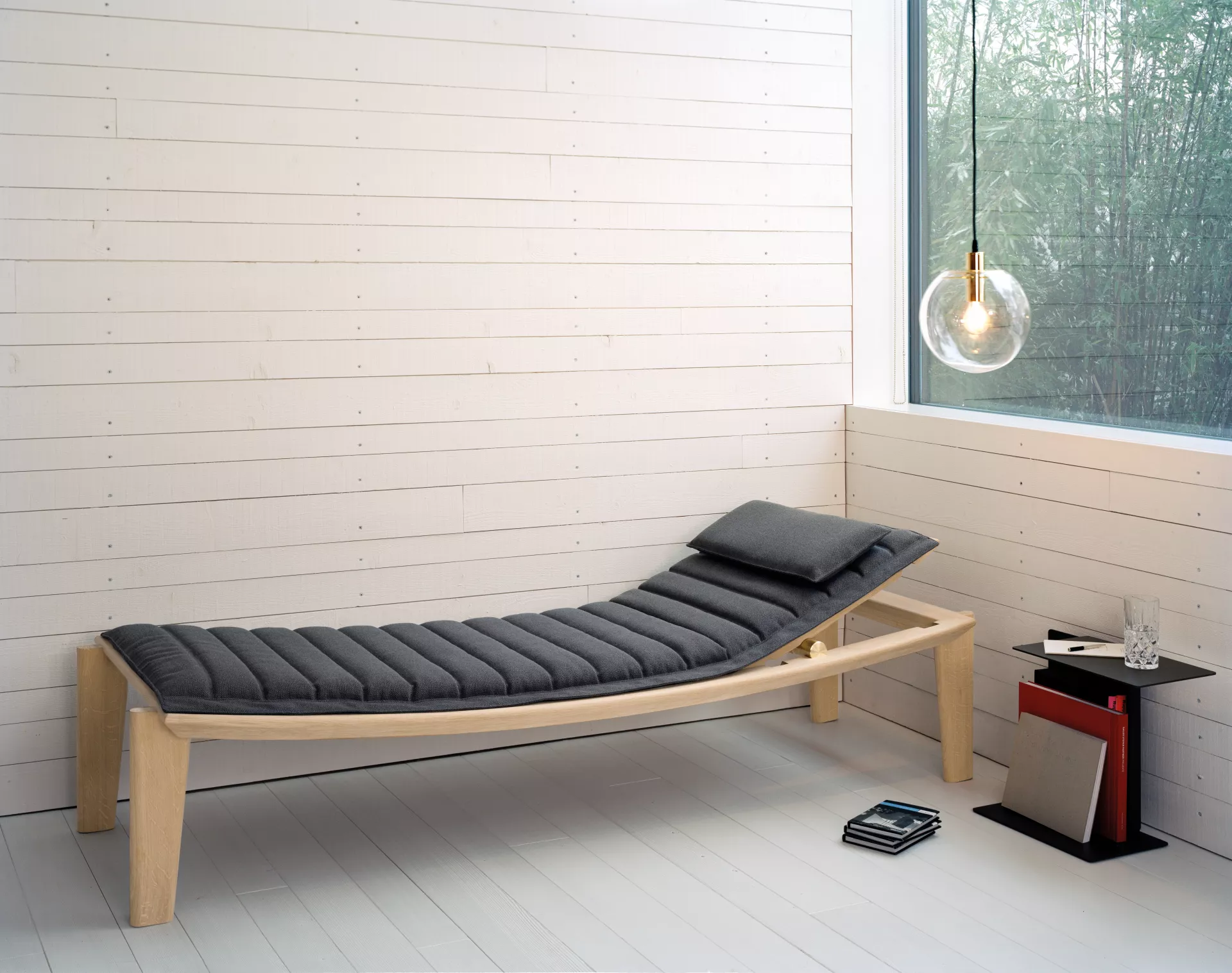 With Ulisse, Konstantin Grcic developed his idea of a daybed, combining the symbolic nature of a simple daybed with the materiality of an elegant and perfectly crafted piece of furniture in the tradition of modernism. The adjustment mechanism of the daybed and the cross-section of the legs are inspired by the classic designs of Charlotte Perriand and Eileen Gray, by their modernity and preciseness, and congenially fit in with the ClassiCon collection.