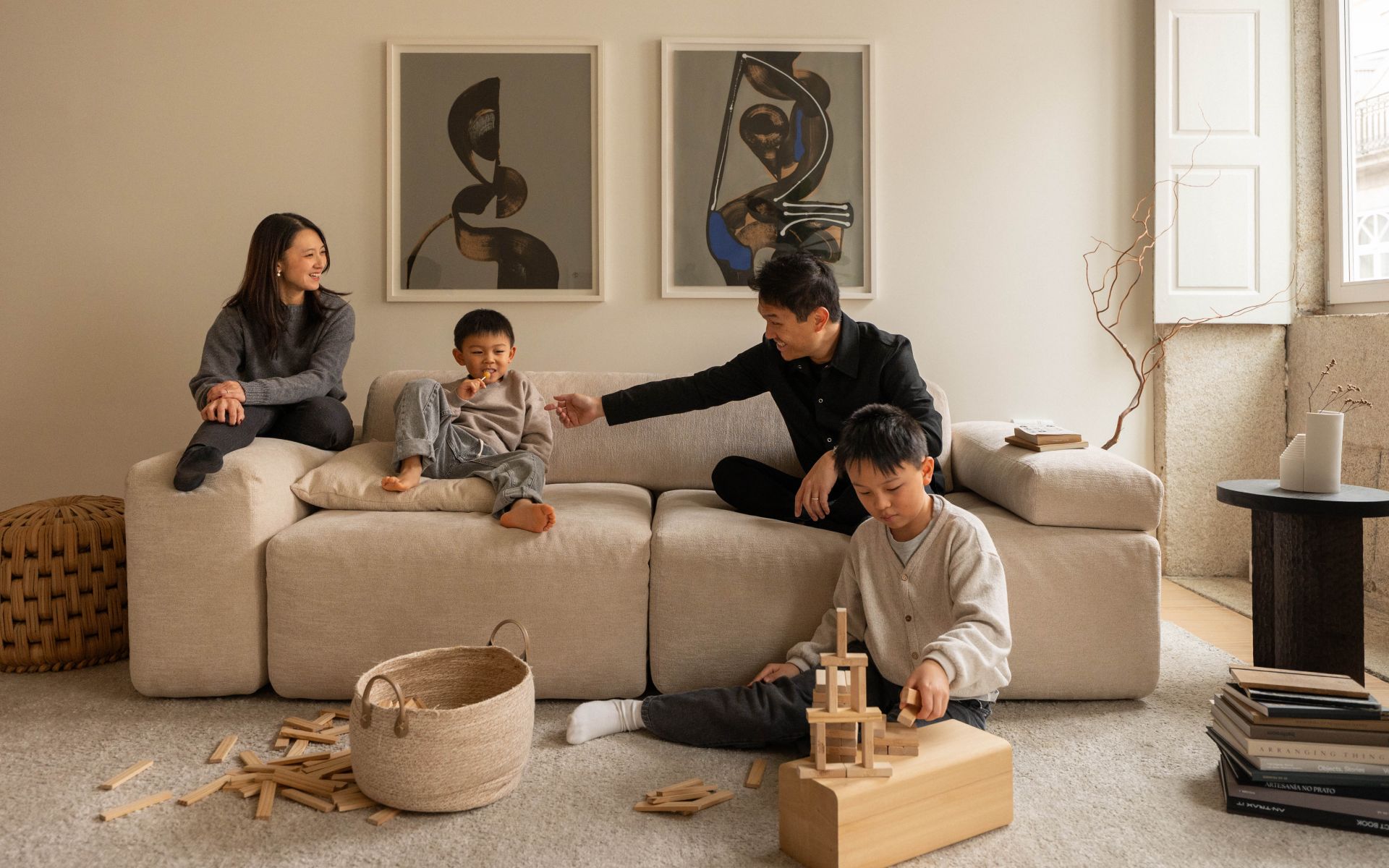 The secret lies in the layered construction on a plywood frame with classic Nosag springs. A precisely coordinated combination of different upholstery foams ensures a harmonious balance: a firmer foam at the front edge makes it easier to get up, while a layer of memory foam creates the sensation of slowly sinking into the sofa.